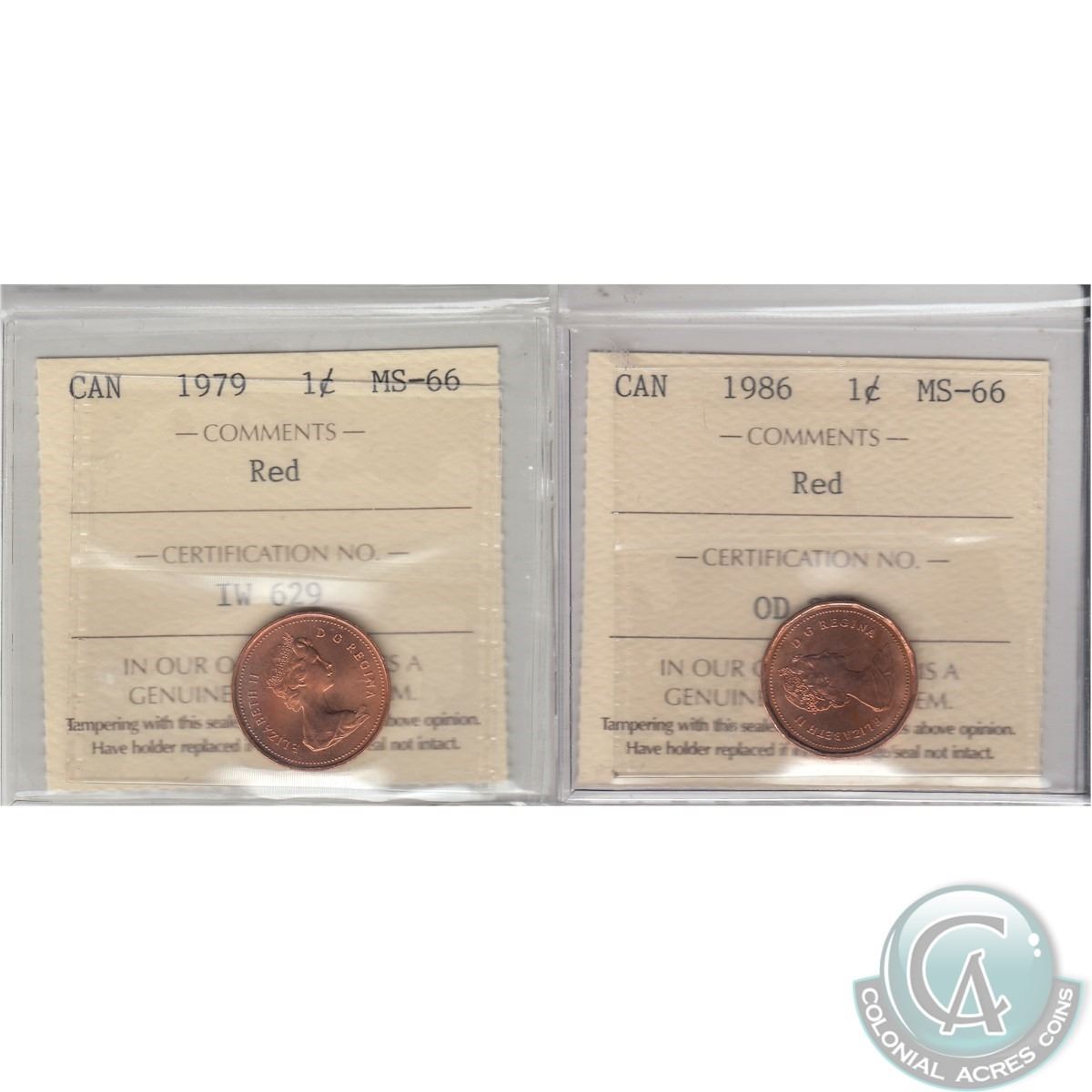 1-cent 1979 & 1986 both ICCS Certified MS-66 Red
