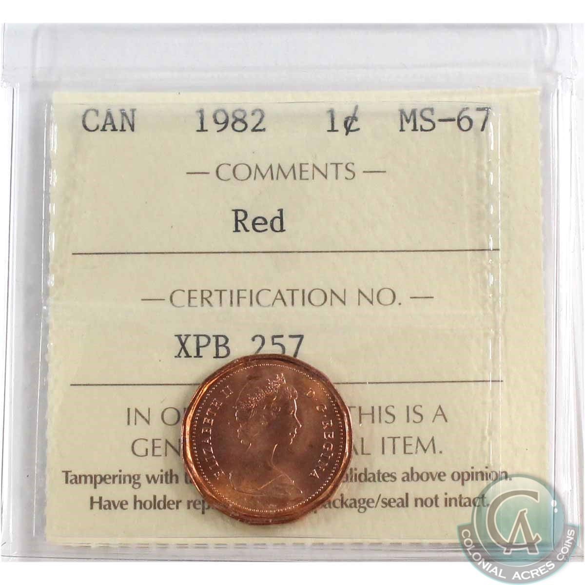 1-cent 1982 ICCS Certified MS-67 RED! Top 2 by ICCS! A bold strike with near flawless fields!