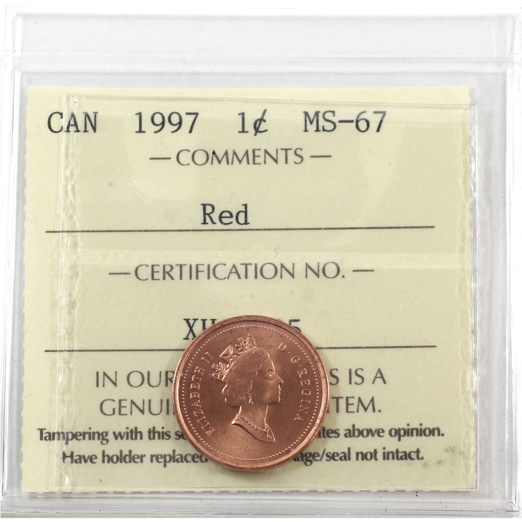 1-cent 1997 ICCS Certified MS-67 Red.