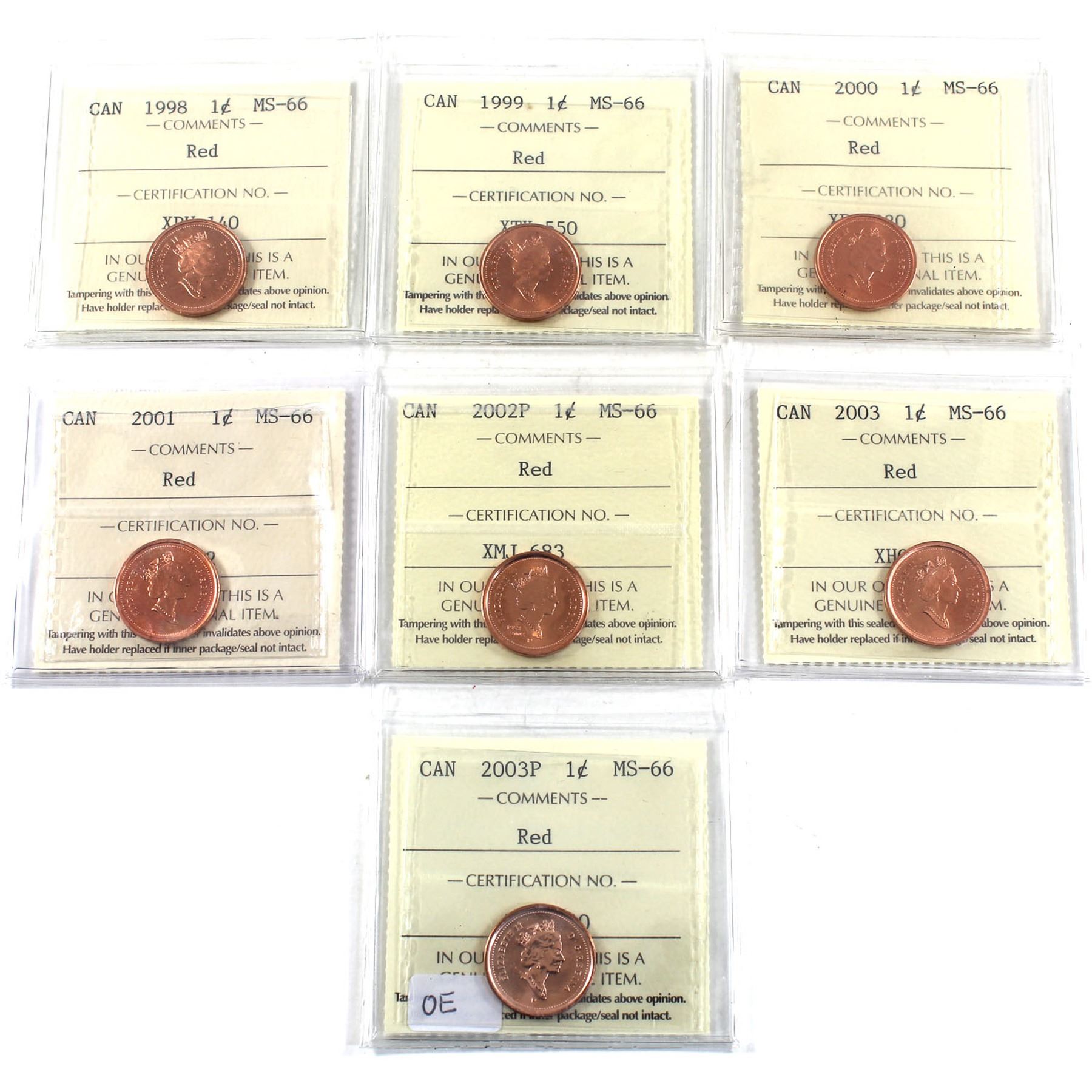 1-cent 1998, 1999, 2000, 2001, 2002P, 2003, 2003P ICCS Certified MS-66 (7pcs)