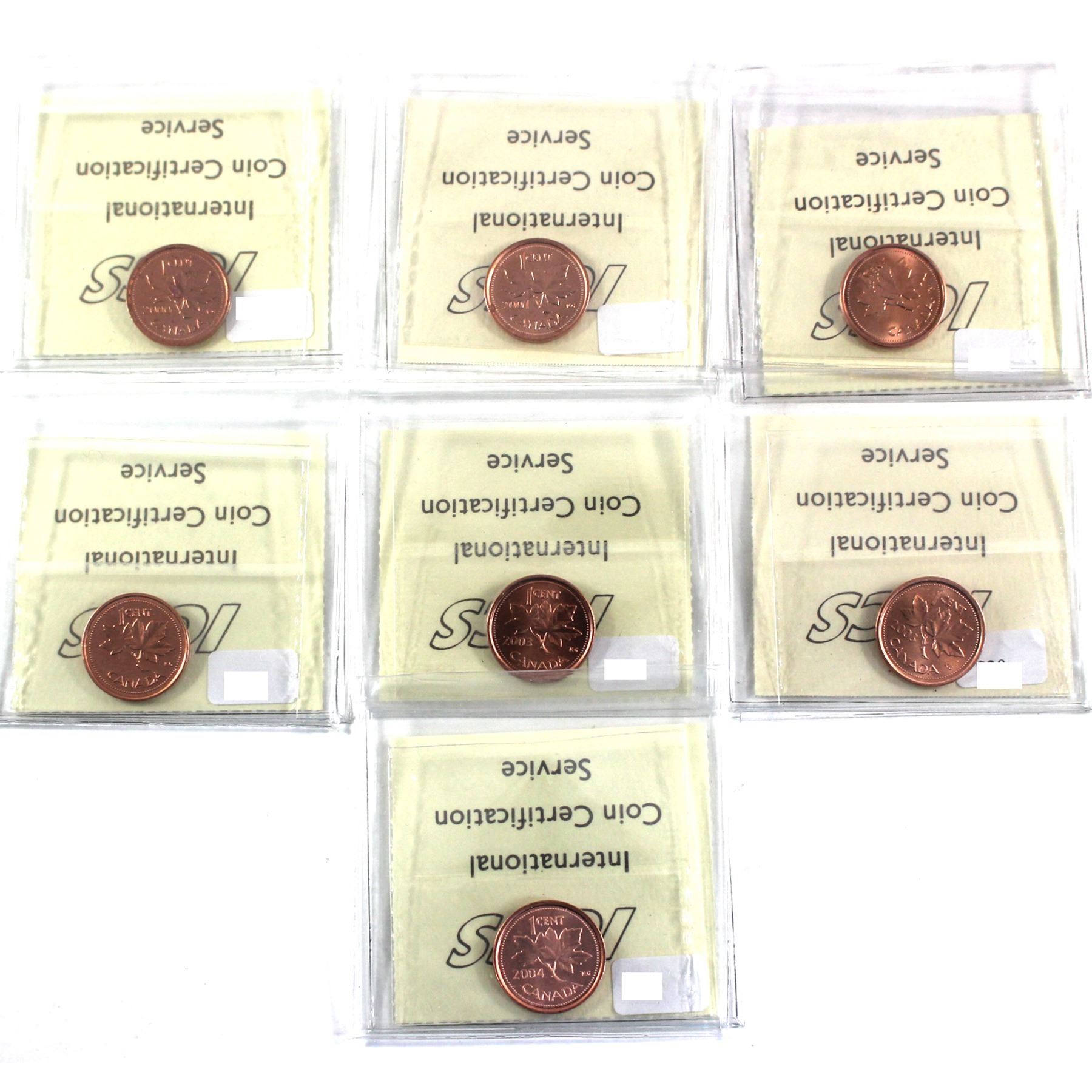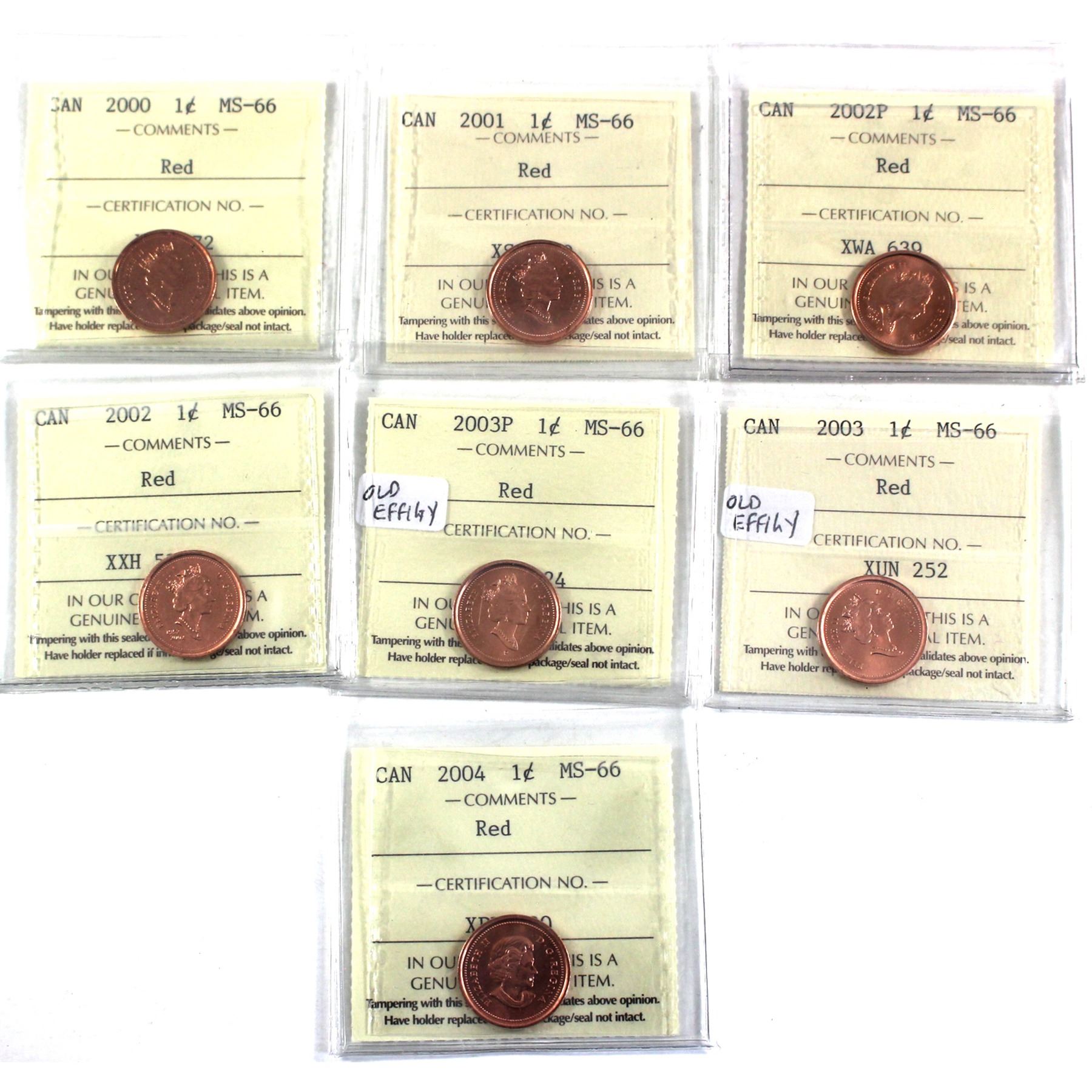 1-cent 2000,2001,2002P,2002,2003P OE,2003 OE & 2004 ICCS MS66. 7pcs