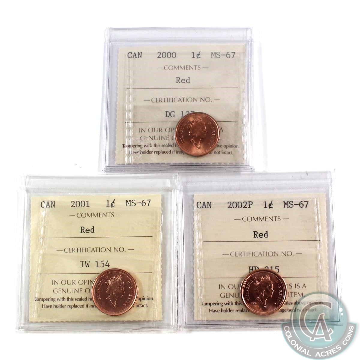 1-cent 2000, 2001, & 2002P all ICCS Certified MS-67 RED! All tied for the highest grade by ICCS! 3pcs