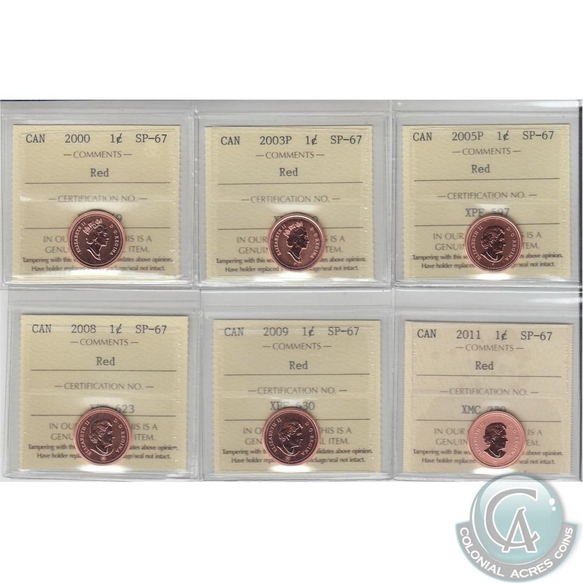 1-cent 2000,2003P,2005P,2008,2009 & 2011 all ICCS Certified SP-67. 6pcs