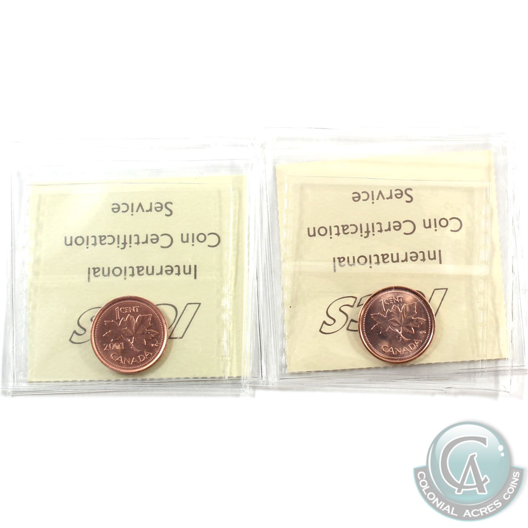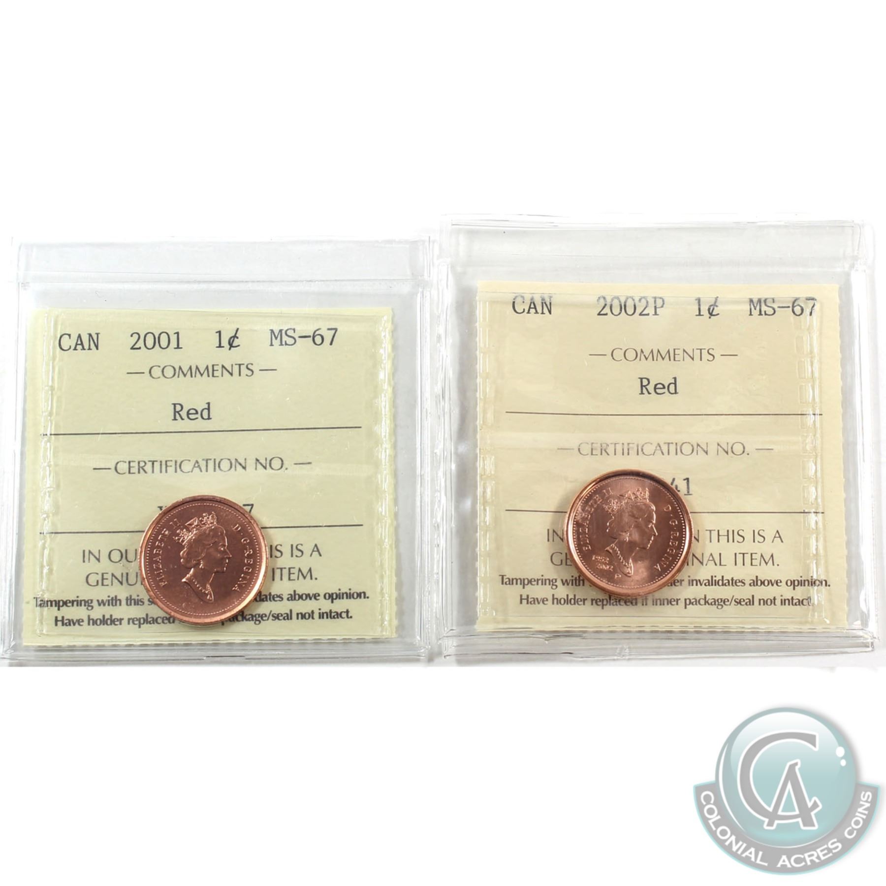 1-cent 2001 & 2002P ICCS Certified MS-67 Red. 2pcs