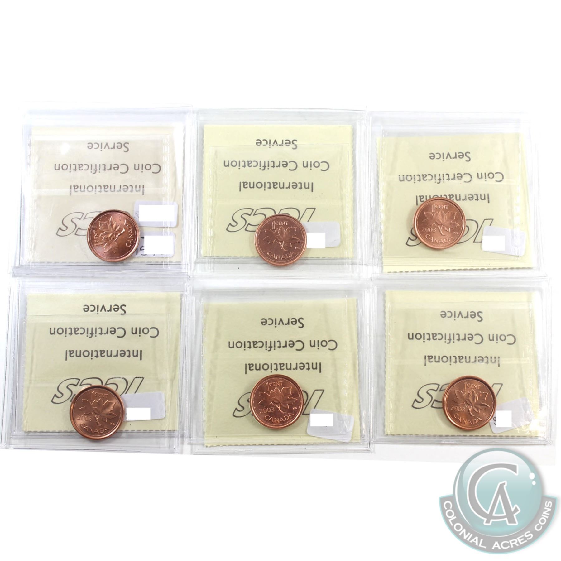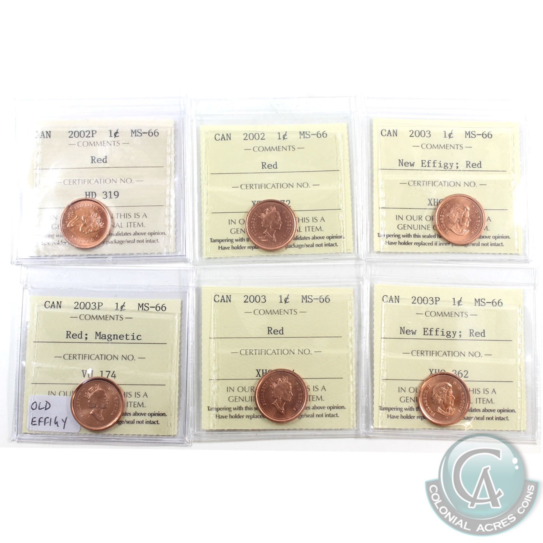 1-cent 2002, 2002P, 2003 Old Effigy, 2003P Old Effigy, 2003 New Effigy & 2003P New Effigy ICCS Certi
