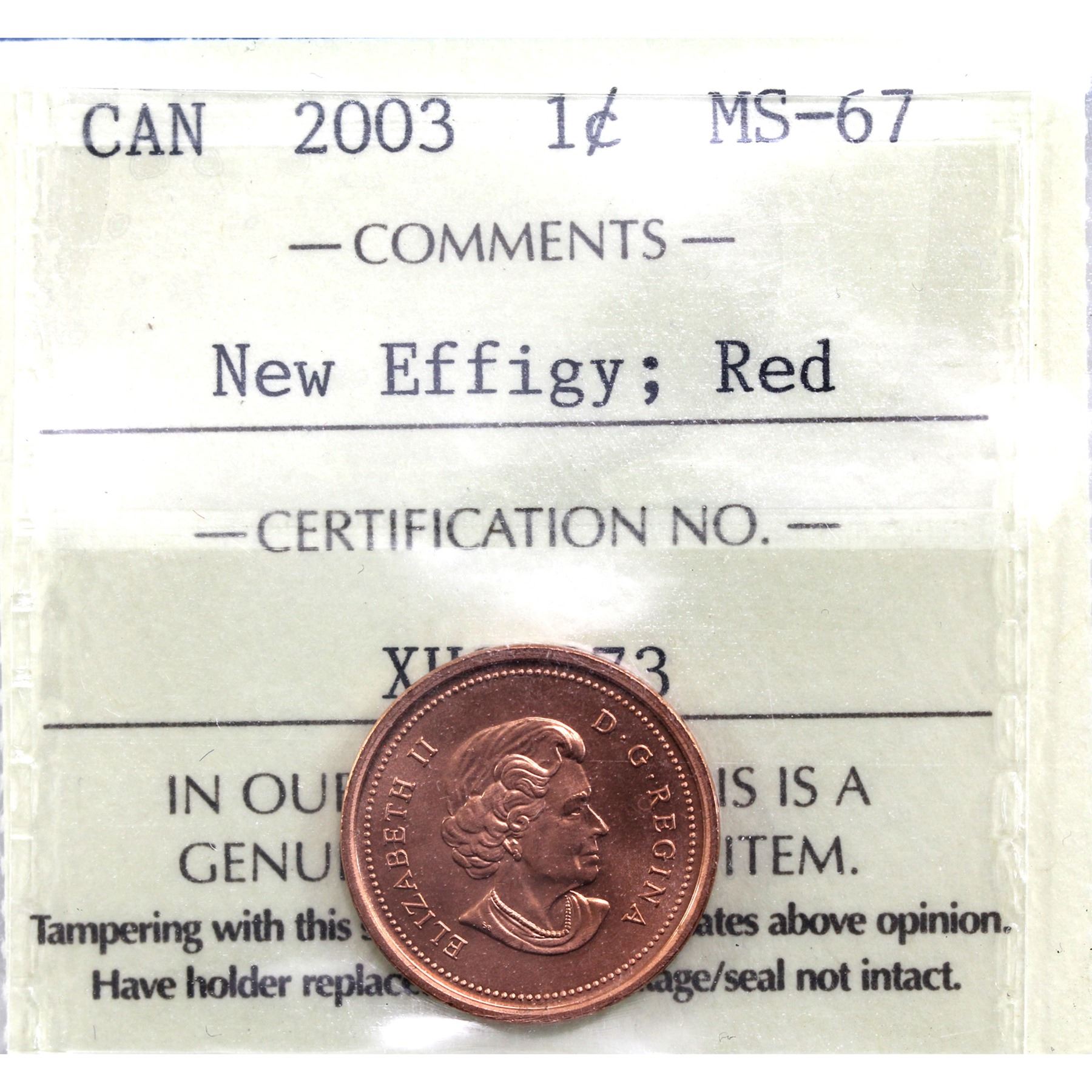 1-cent 2003 New Effigy ICCS Certified MS-67 Red. TOP GRADE! This is a no logo, non-magnetic coin.