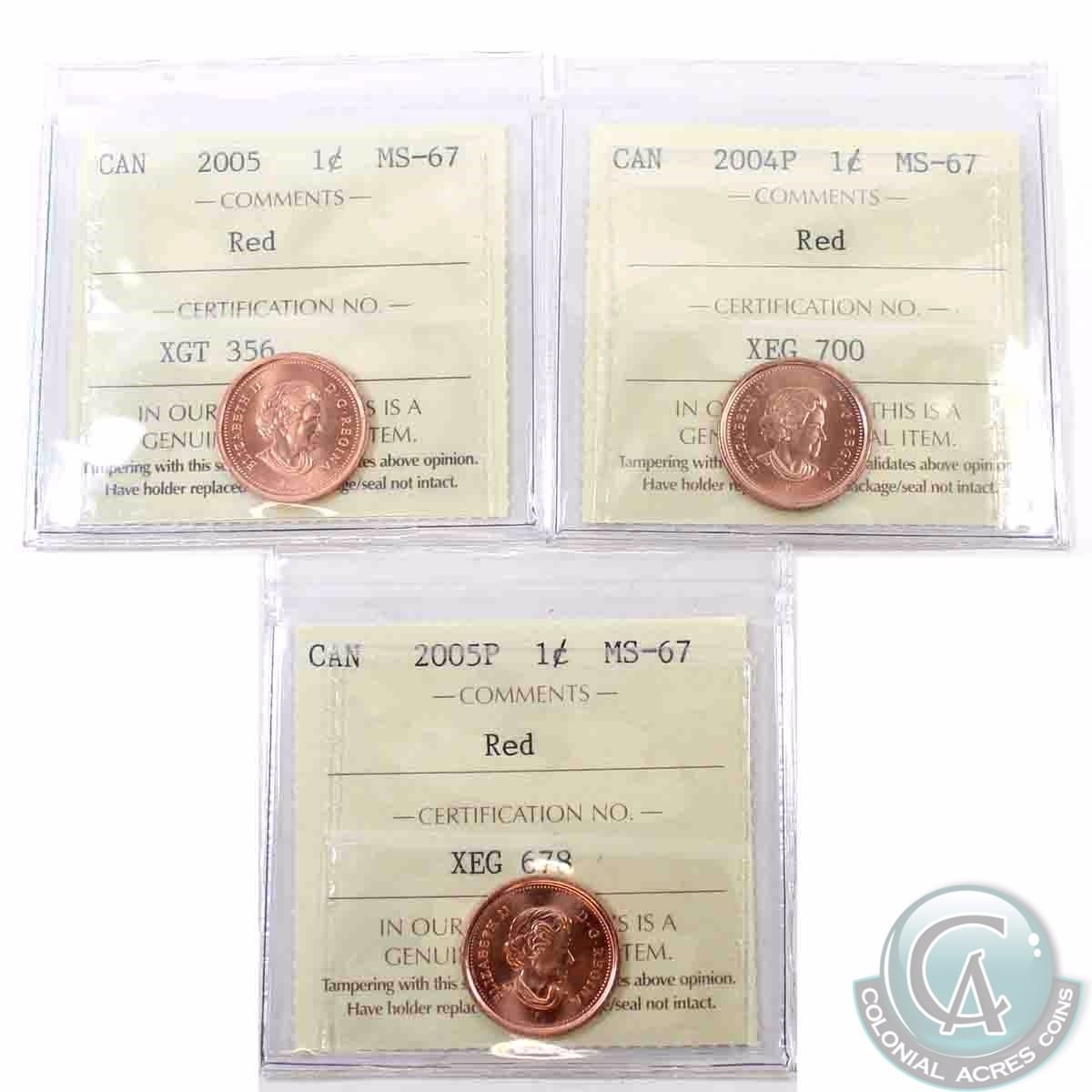 1-cent 2004P, 2005 & 2005P ICCS Certified MS-67 Red. All tied for the finest known. 3pcs