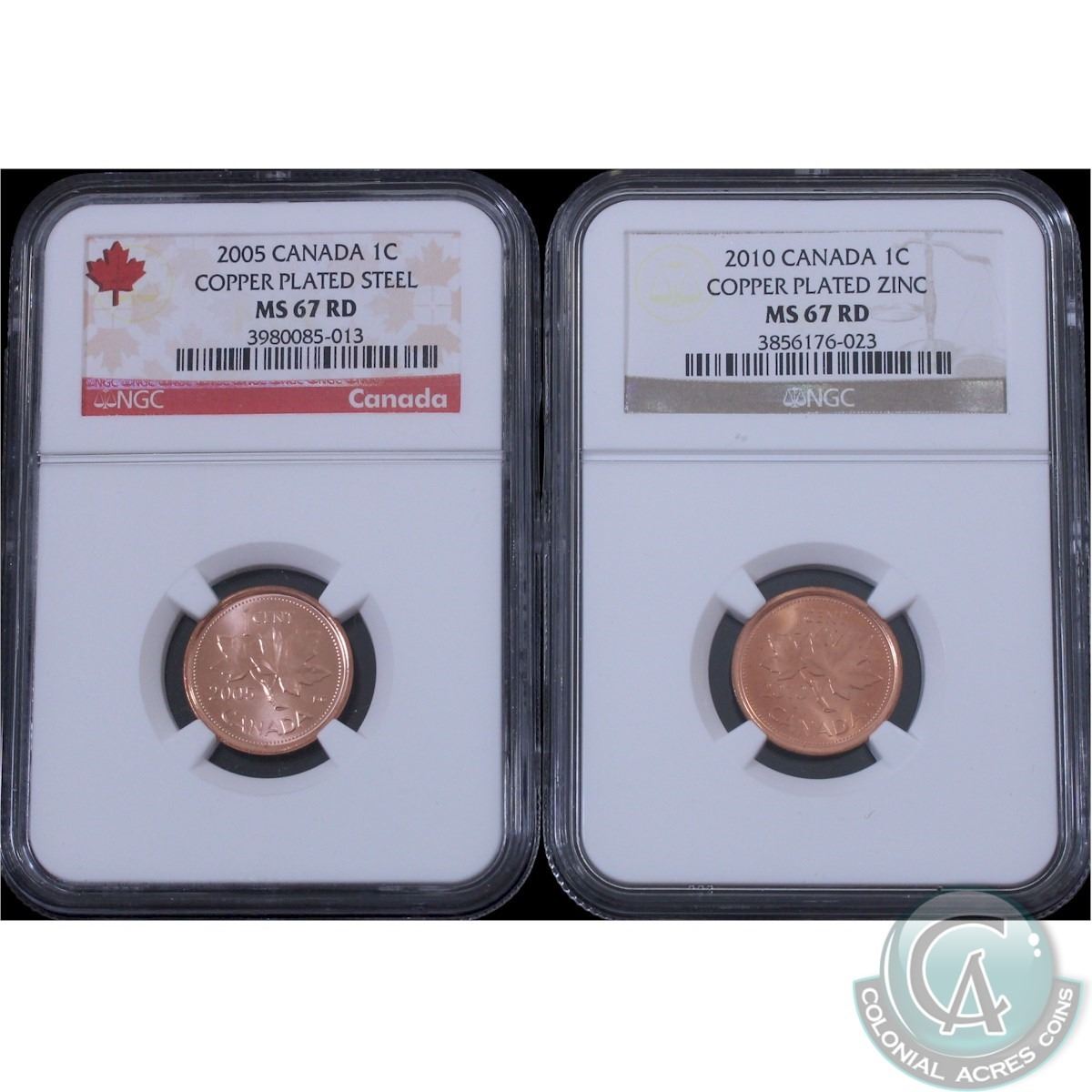 1-cent 2005 Magnetic & 2010 Non Magnetic NGC Certified MS-67. 2pcs