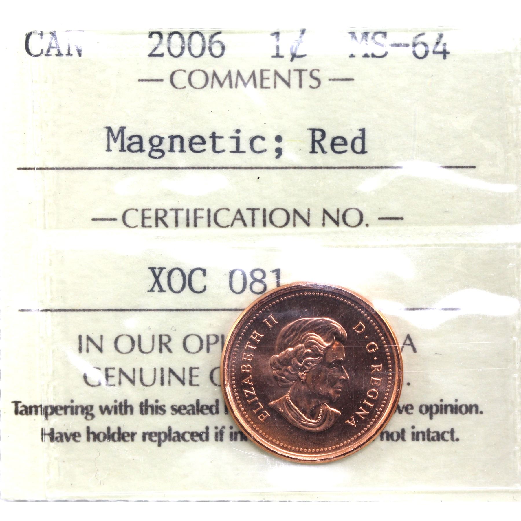 1-cent 2006 Magnetic ICCS Certified MS-64 Red *Scarce Variety*