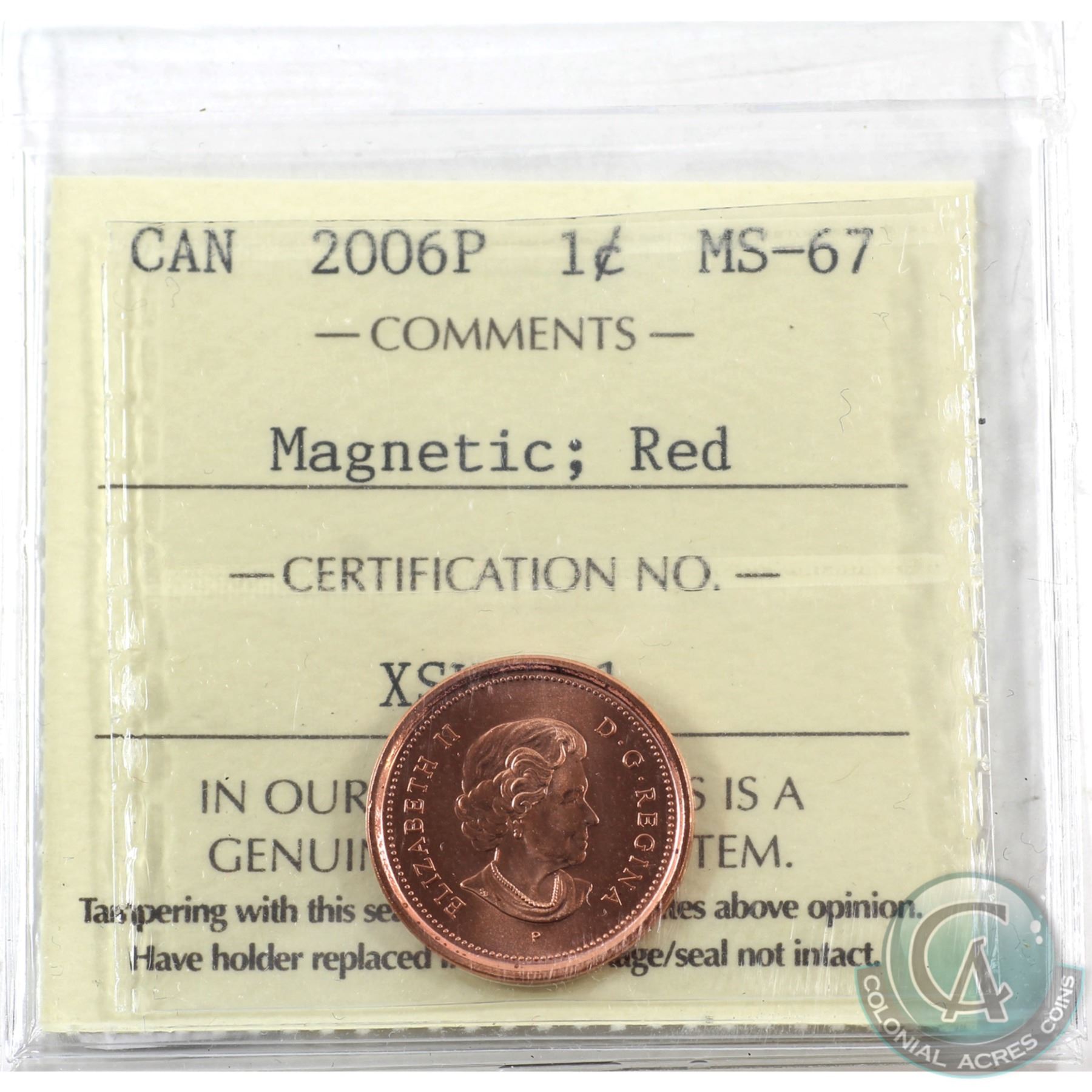 1-cent 2006P Magnetic ICCS Certified MS-67 Red.