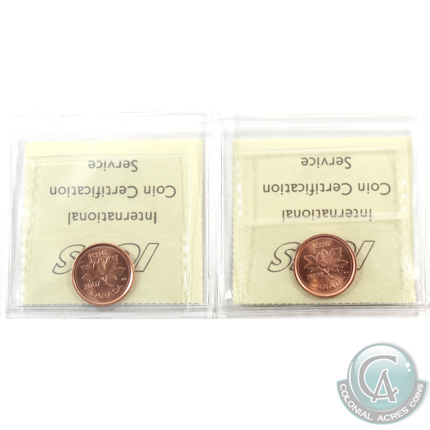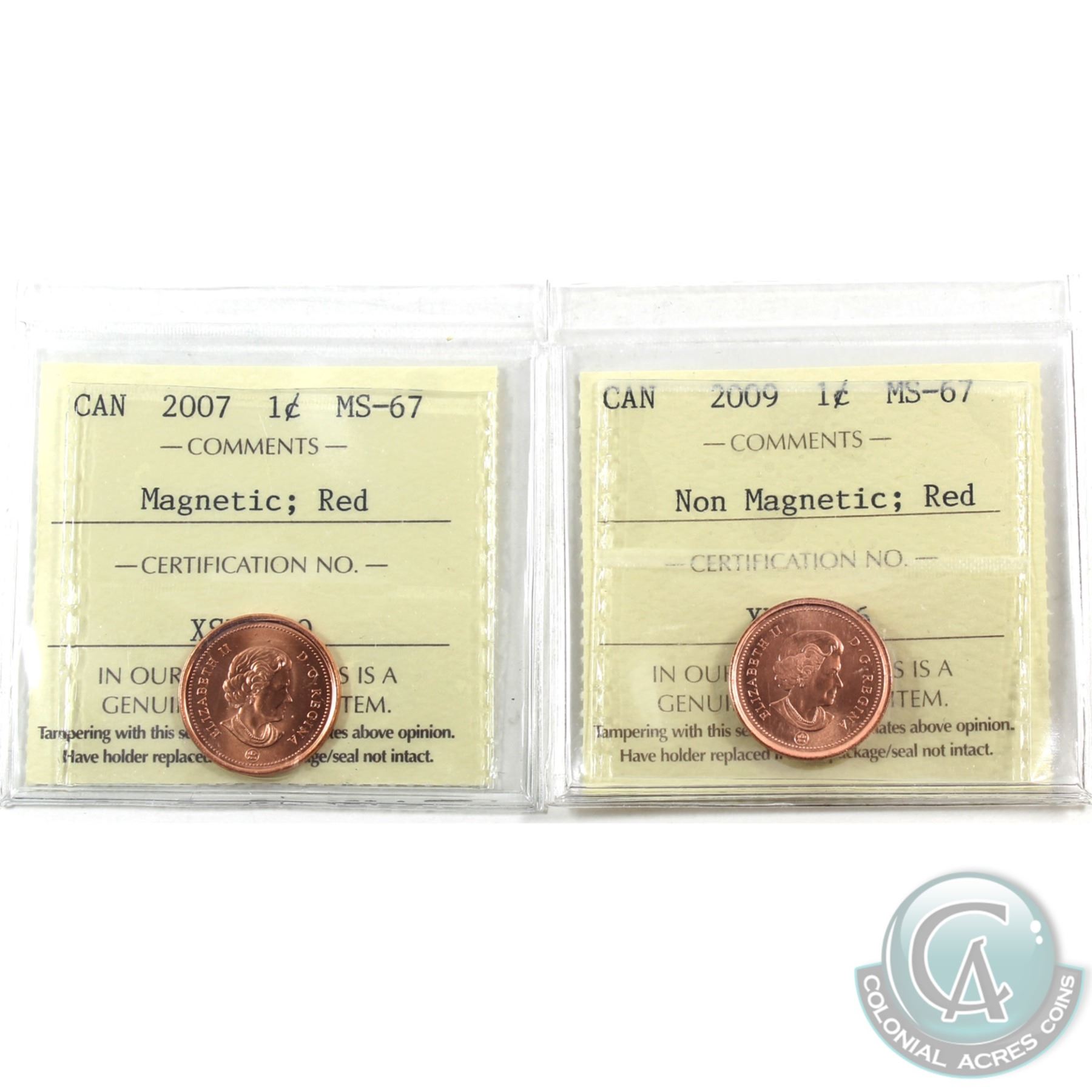 1-cent 2007 Magnetic & 2009 Non Magnetic ICCS Certified MS-67 Red. 2pcs