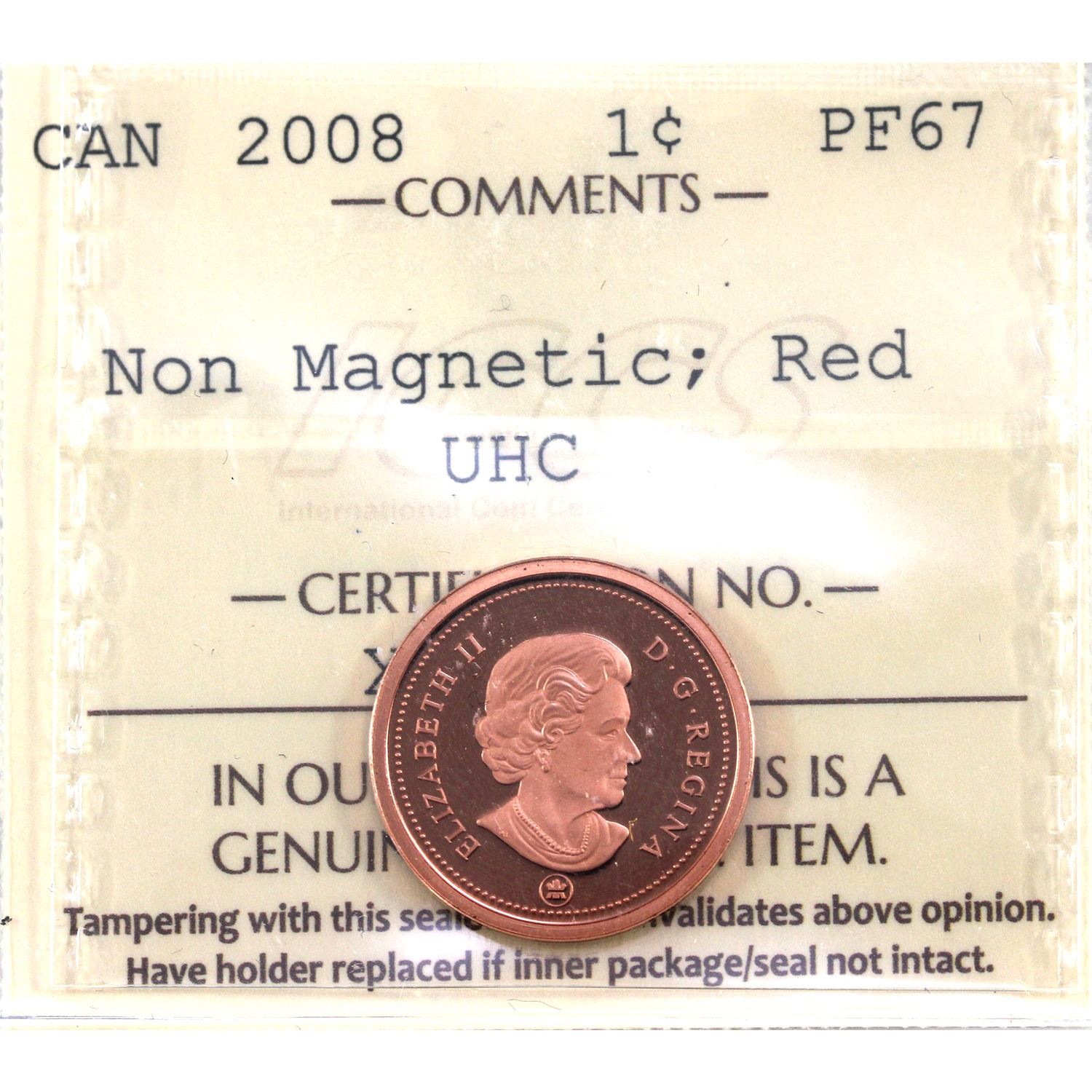 1-cent 2008 Non-Magnetic ICCS PF67 Red Ultra Heavy Cameo