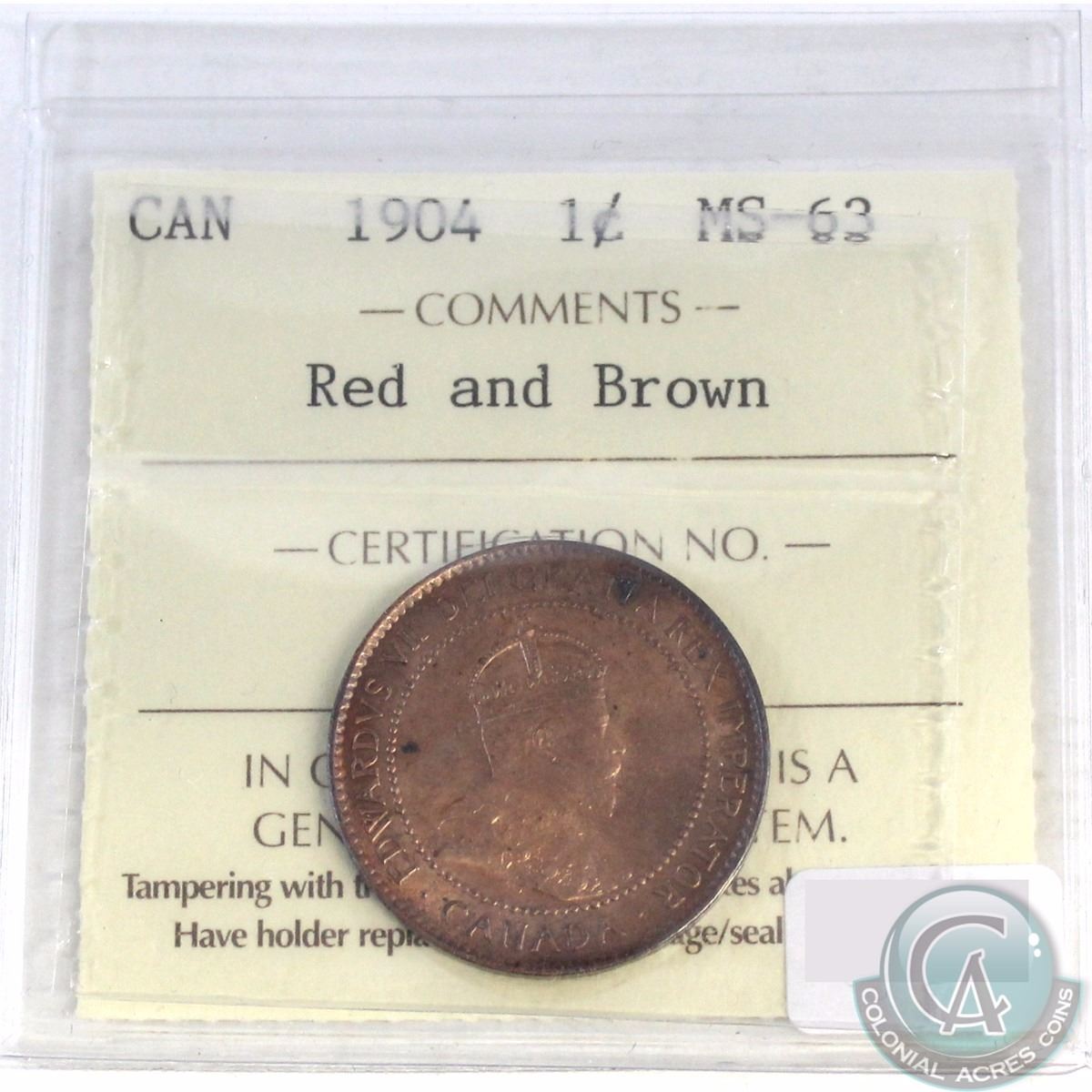 1-cent Canada 1904 ICCS Certified MS-63 Red and Brown