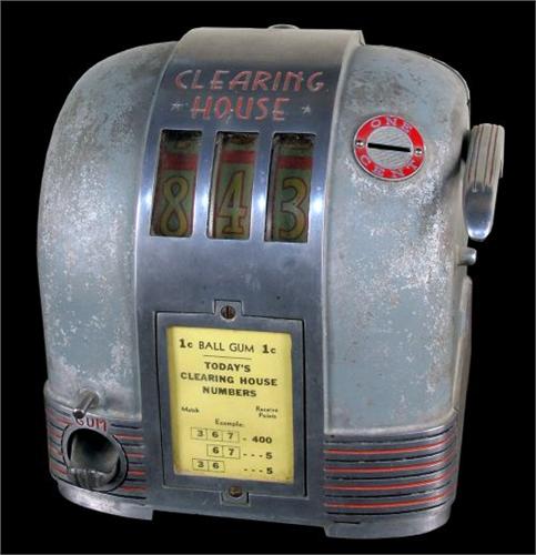 1 cent "Clearing House" numbers trade stimulator dispenses gum