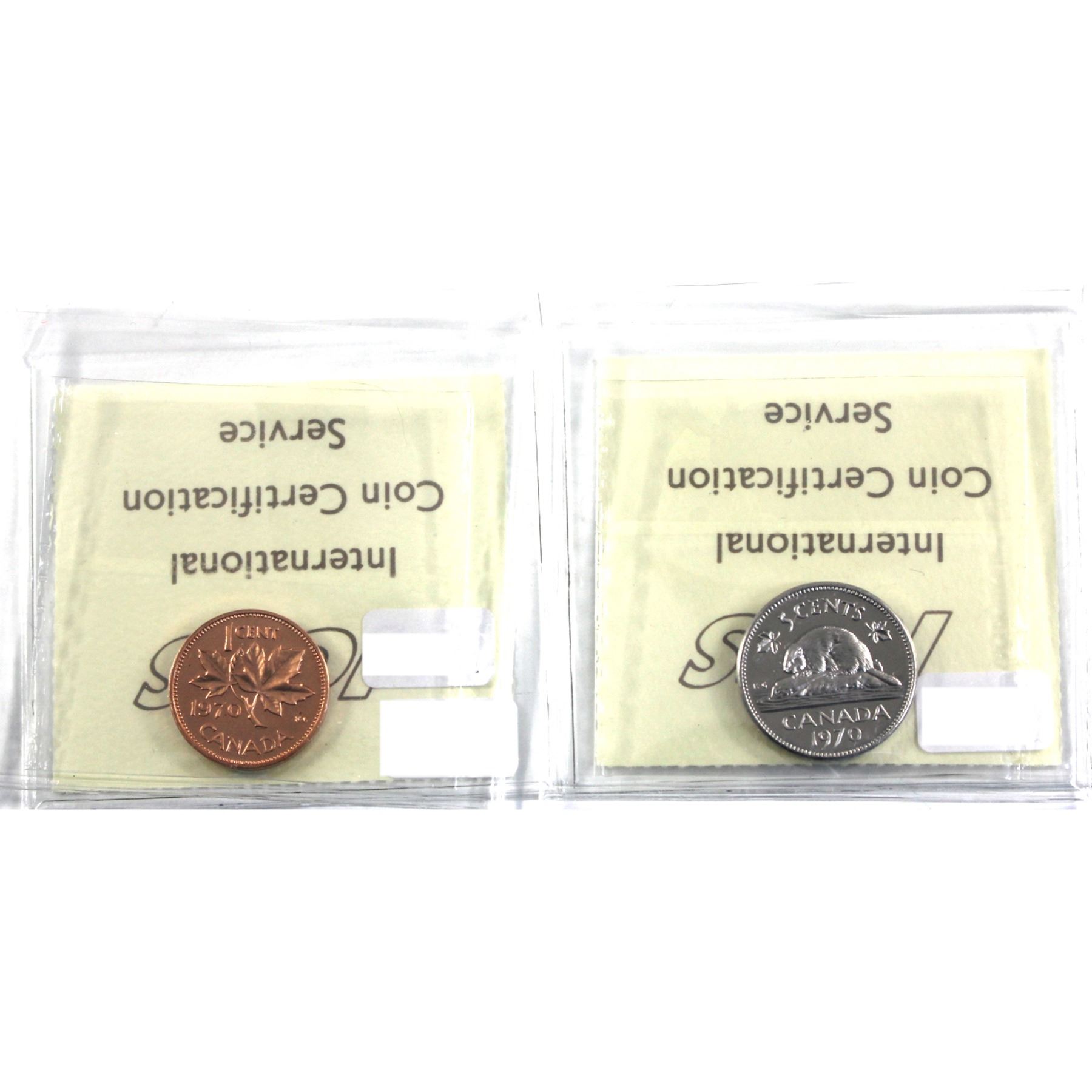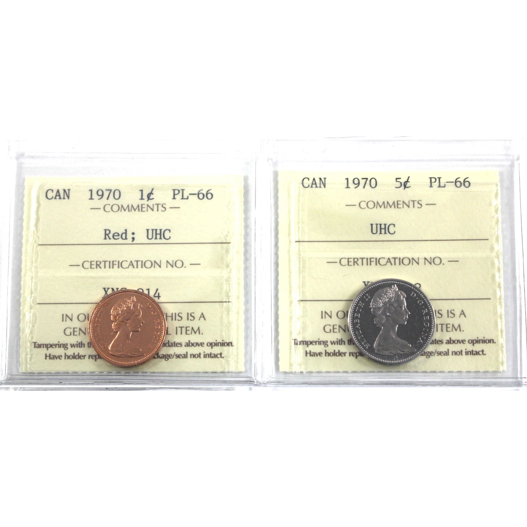 1-cent Red & 5-cent 1970 ICCS Certified PL-66 Ultra Heavy Cameo. 2pcs
