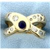 In 14k Yellow Gold. Contains a 1/4 ct high quality natural sapphire with vibrant blue color and excellent clarity. Also contains 3/4 ct TW of high quality diamonds ranging from .15ct to .01ct, VS clarity/H color. Size 10. 10.1g.