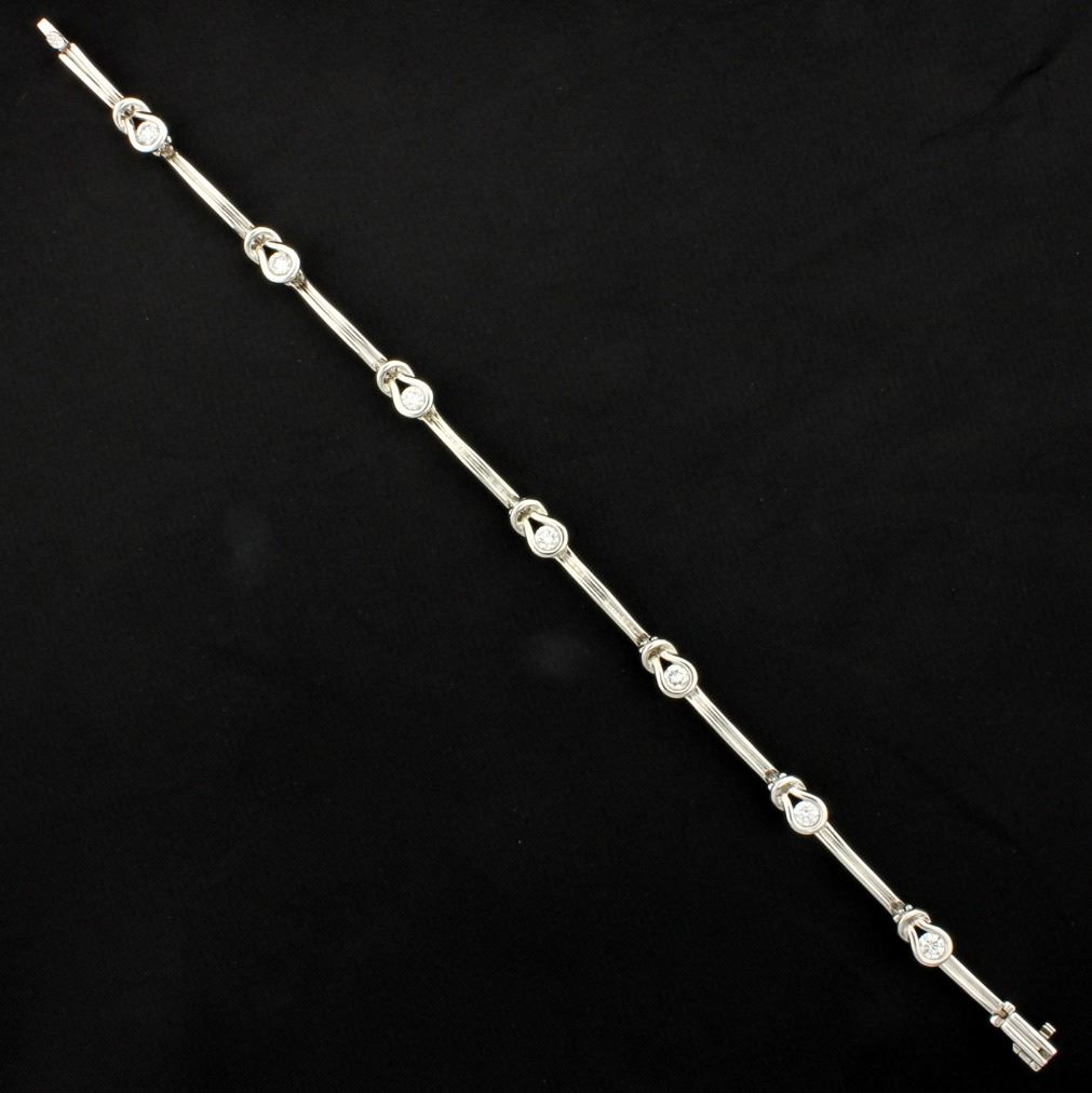 In 14K white gold, it is 7 1/2 inches long and contains seven high quality.15ct round diamonds - SI clarity/G to H color. This bracelet has a safety clasp.           11.7g