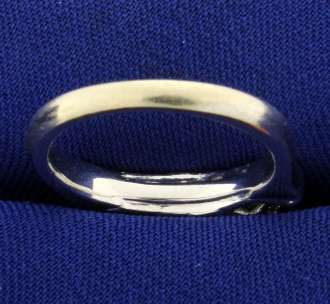 In 14k white gold. Containing three round high quality diamonds: Center is .3ct, side stones are .2cts each. Also contains six baguette .05ct high quality diamonds. Diamonds are SI clarity/I color, great cut with lots of sparkle.  Size 7 1/4. 5.1g.