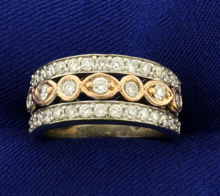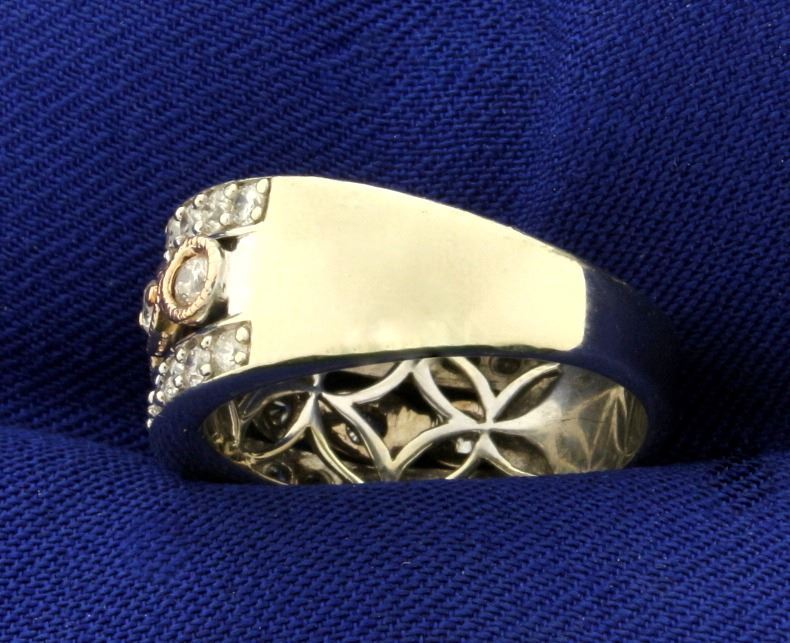 In 10K White and Rose Gold. Contains thirty seven high quality Diamonds ranging from .02 to .04ct each. SI clarity/H color. Size 6 3/4. 6.0g