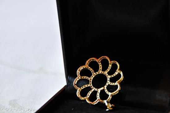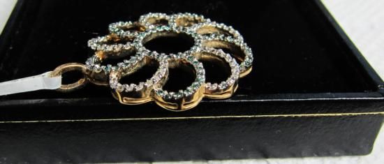 Normal 0 Over 1 inch in diameter, Yellow gold stamped with 14 kt, .70cts Blue Diamonds and .30cts White Diamonds (SI1-I1 clarity, F-G-H colors). Gold weight 4.76 grams. Fancy blue and white diamonds. New with certificate. Normal 0