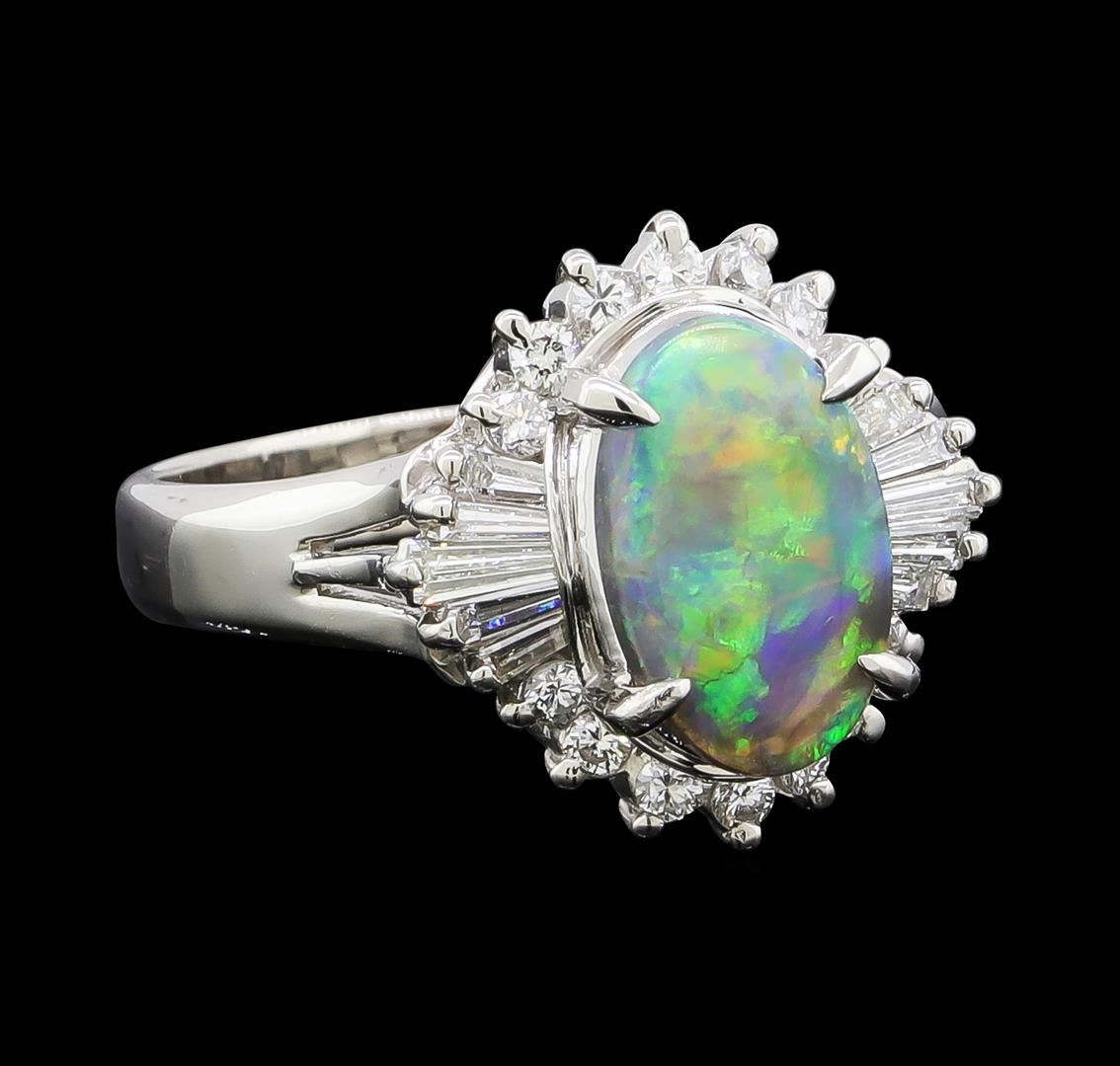One ring featuring: Platinum containing Black Opal with a total weight of 1ct and Diamonds with a total weight of 0.41ct. Total Weight of Ring: 6.3 grams.