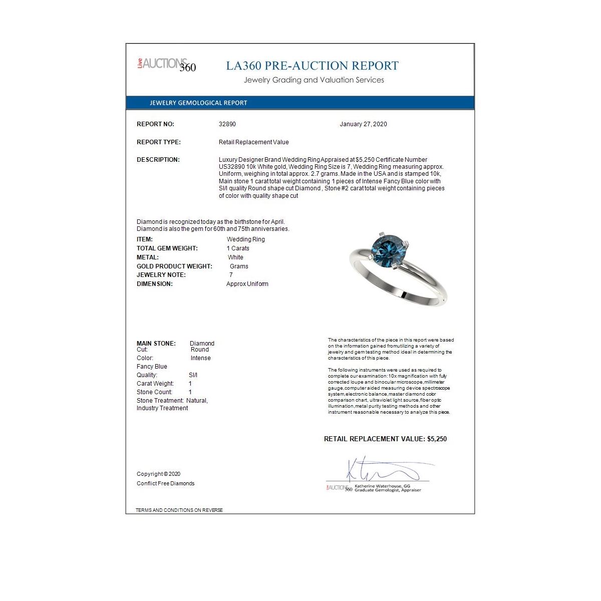 REF-92F2M - SKU: 32890 ---- 1 ctw Certified Intense Blue Diamond Engagment Ring 10k White Gold