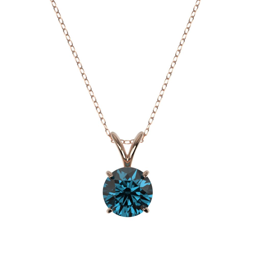 REF-90A8N - SKU: 33189 ---- 1 ctw Certified Intense Blue Diamond Solitaire Necklace 10k Rose Gold