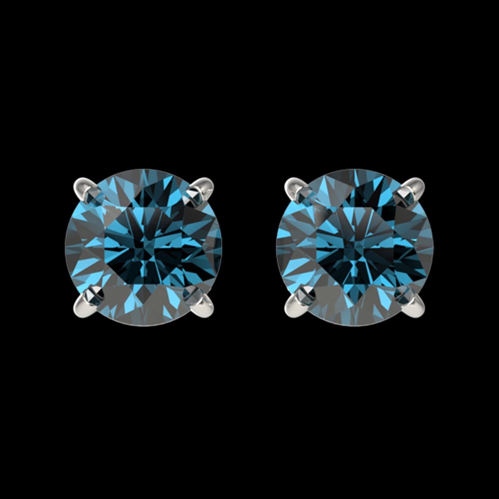 REF-71N2F - SKU: 33055 ---- 1 ctw Certified Intense Blue Diamond Stud Earrings 10k White Gold