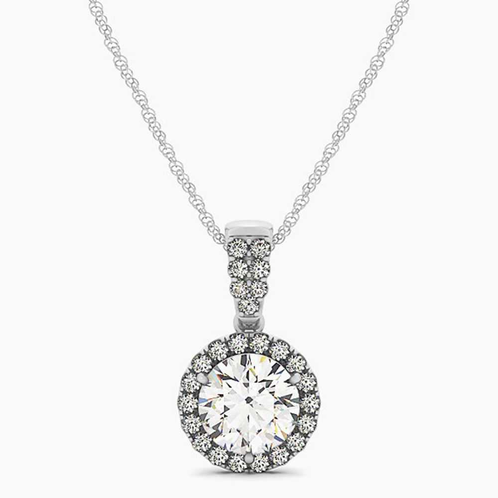 REF-166H4R - SKU: 30130 ---- 1 ctw Certified SI Diamond Solitaire Halo Necklace 14k White Gold