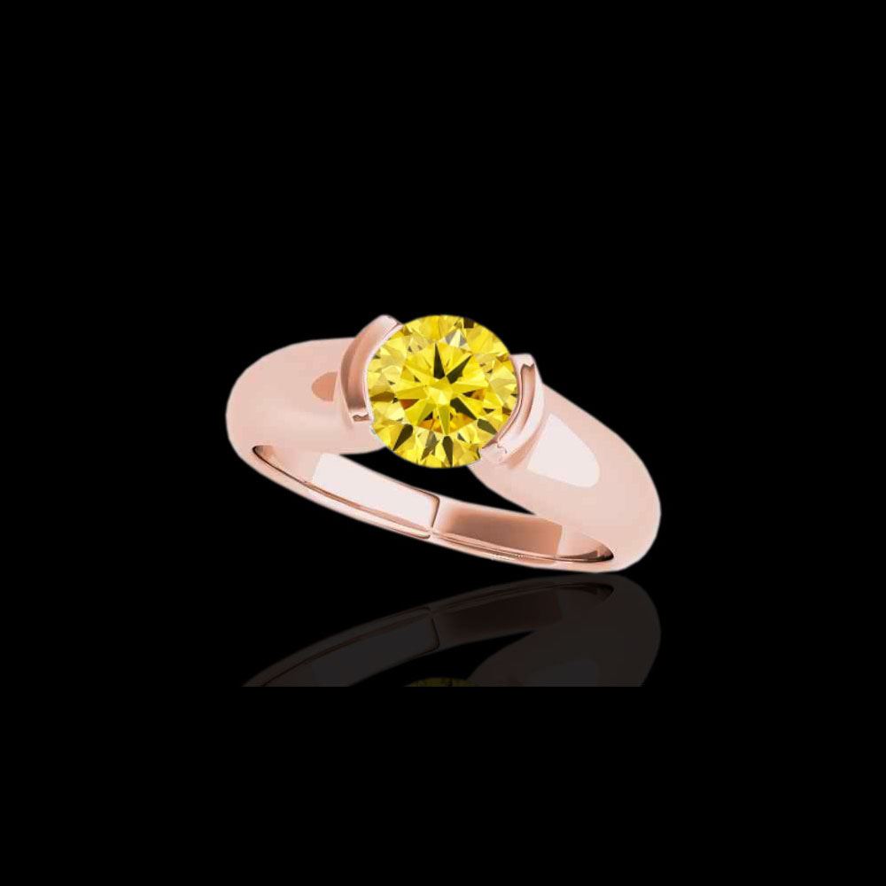 1 ctw Certified SI/I Fancy Intense Yellow Diamond Ring 10K Rose Gold
