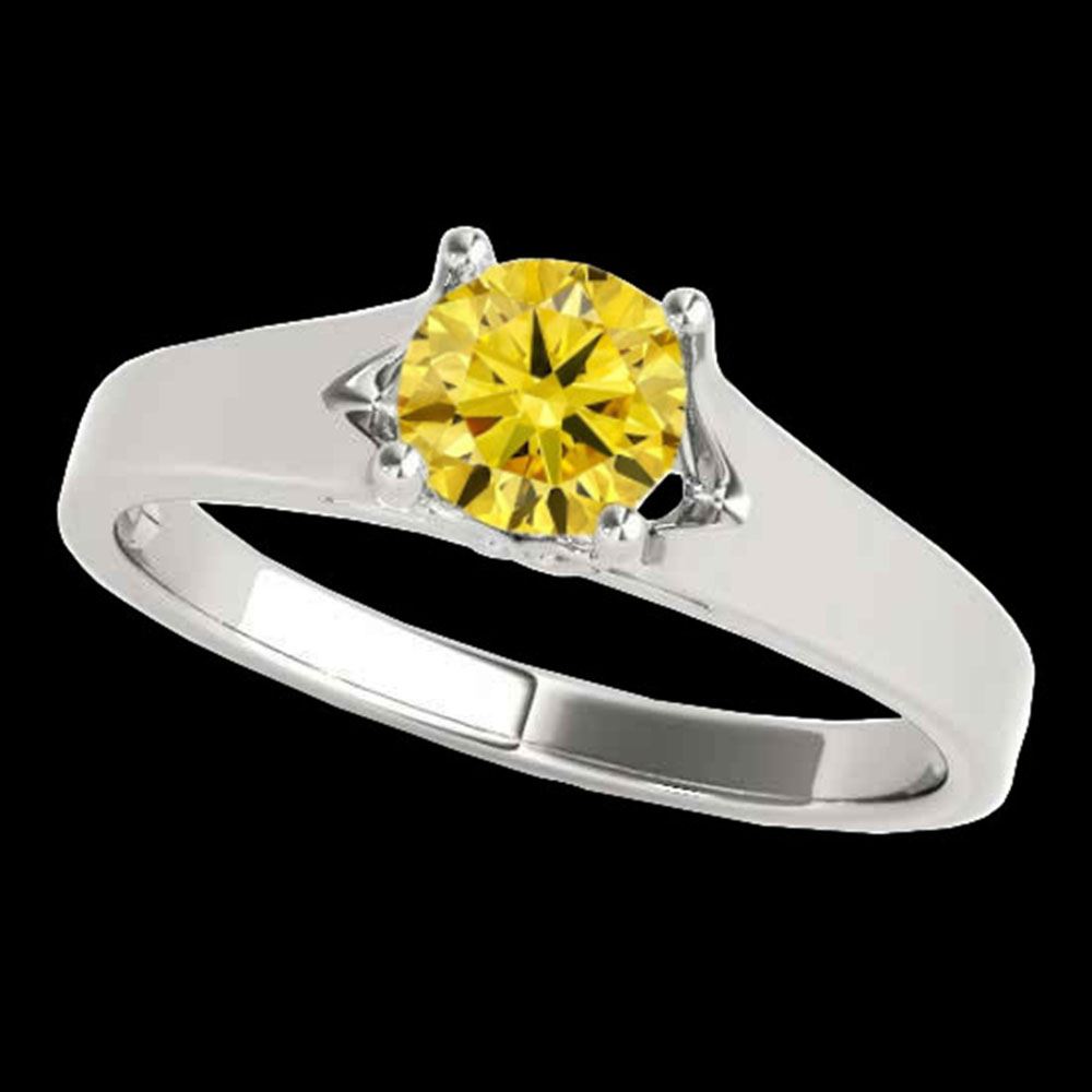 REF-184K3Y - SKU: 35162 ---- 1 ctw Certified SI/I Fancy Intense Yellow Diamond Ring 10k White Gold