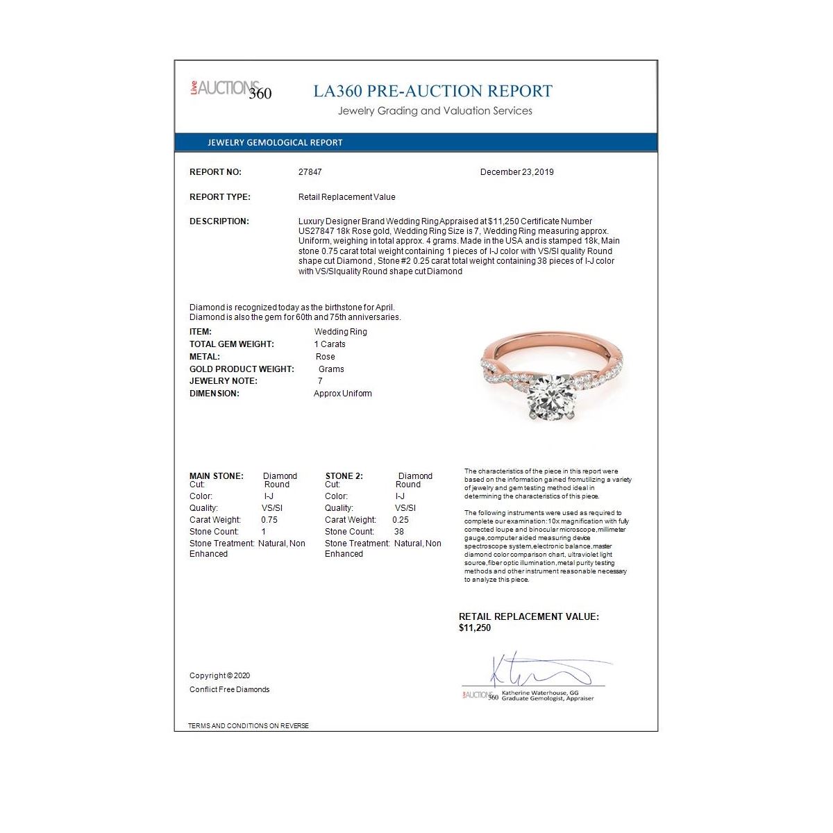 REF-153H4R - SKU: 27847 ---- 1 ctw Certified VS/SI Diamond Wedding Ring 18k Rose Gold