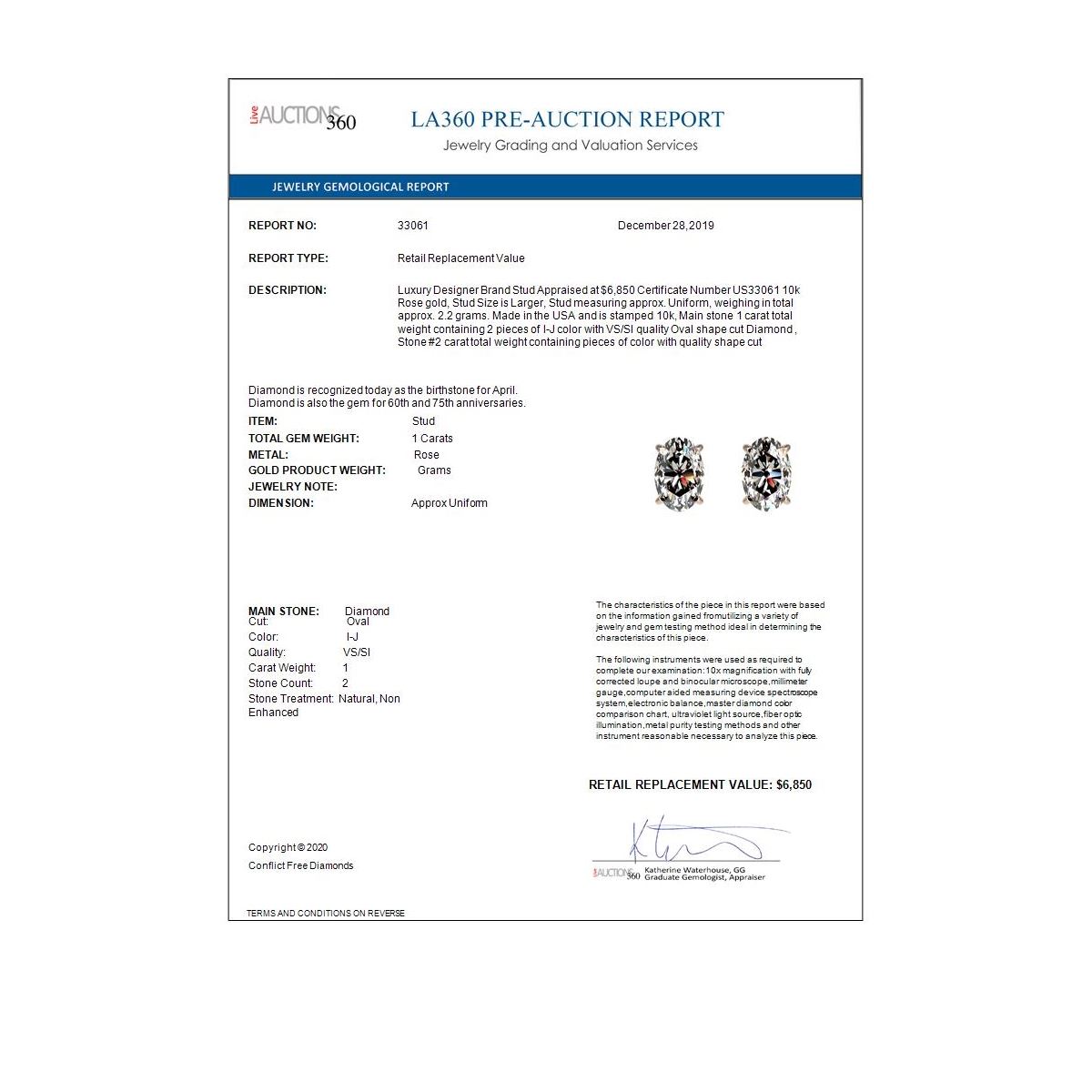 REF-120W3H - SKU: 33061 ---- 1 ctw Certified VS/SI Quality Oval Diamond Stud Earrings 10k Rose Gold