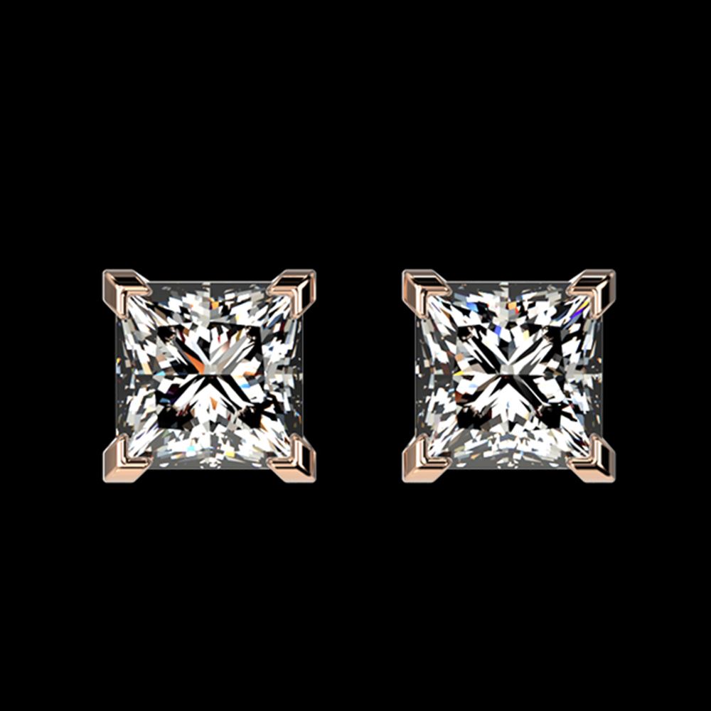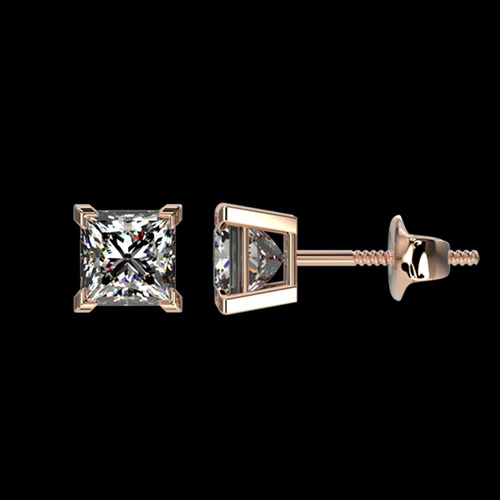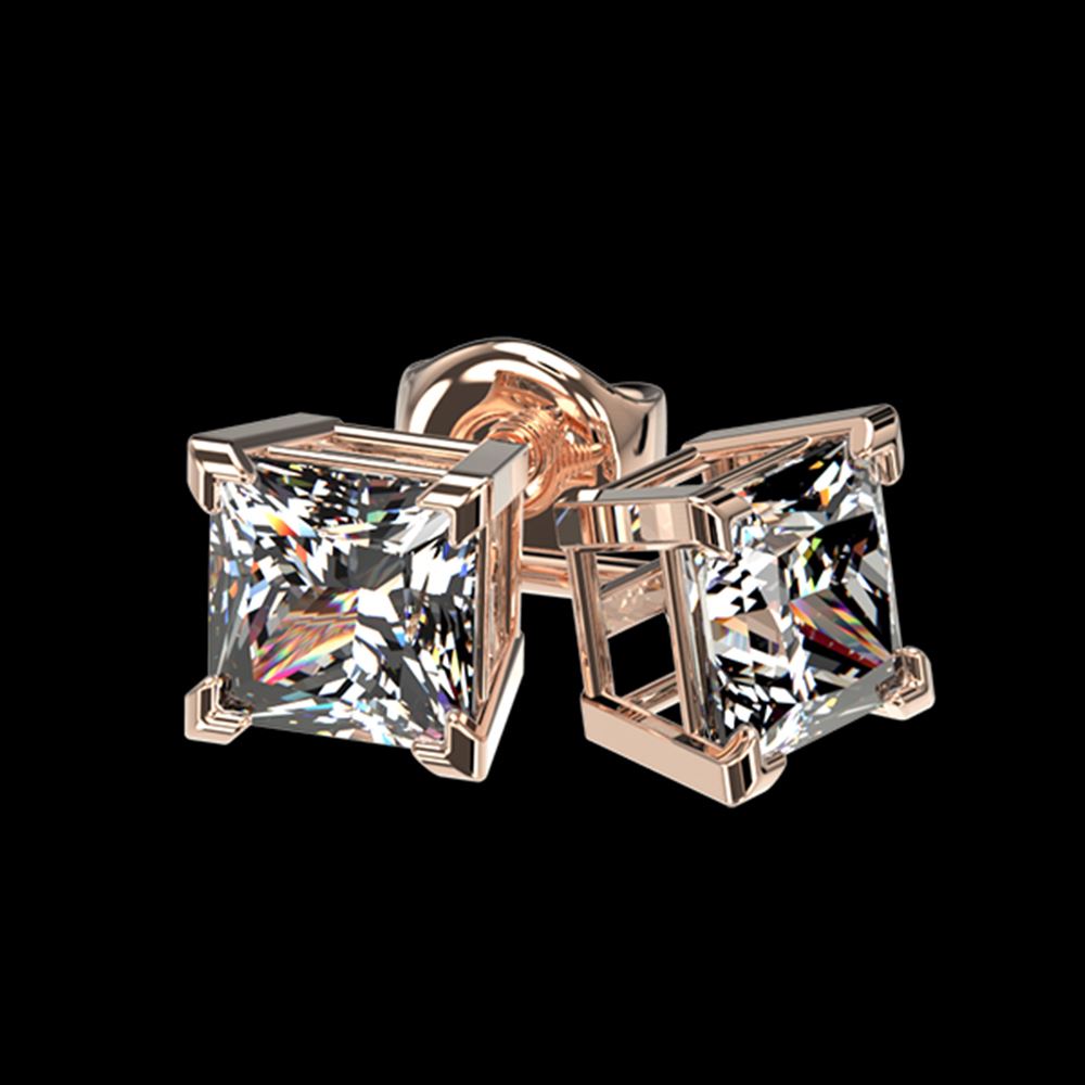 REF-120A3N - SKU: 33064 ---- 1 ctw Certified VS/SI Quality Princess Diamond Stud Earrings 10k Rose Gold