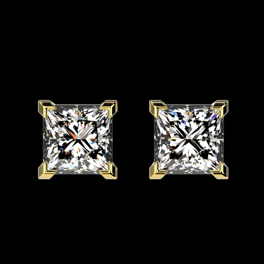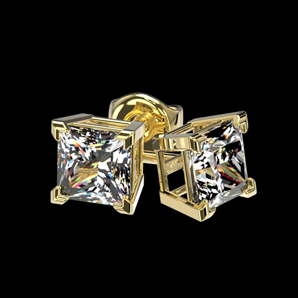 REF-120F3M - SKU: 33065 ---- 1 ctw Certified VS/SI Quality Princess Diamond Stud Earrings 10k Yellow Gold