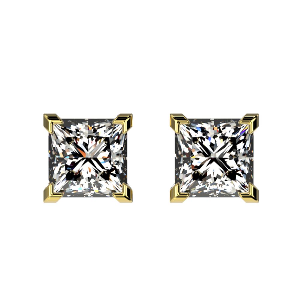 REF-120M3G - SKU: 33065 ---- 1 ctw Certified VS/SI Quality Princess Diamond Stud Earrings 10k Yellow Gold