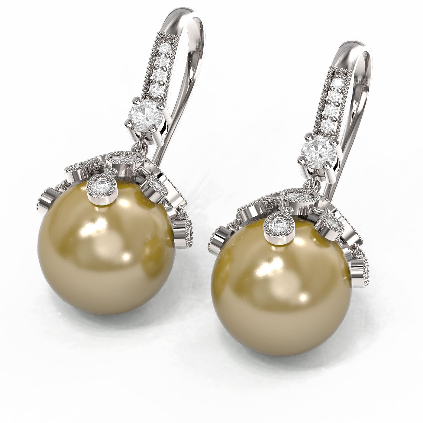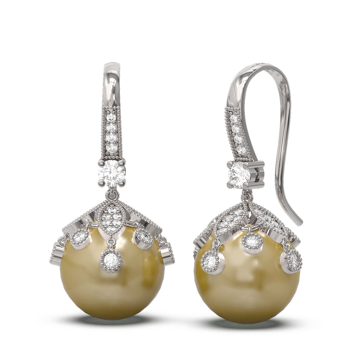 REF-129A8N - SKU: 61325 ---- 1 ctw Diamond & Pearl Earrings 18K White Gold