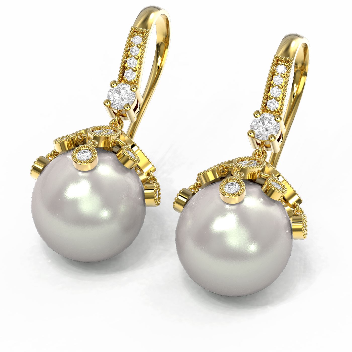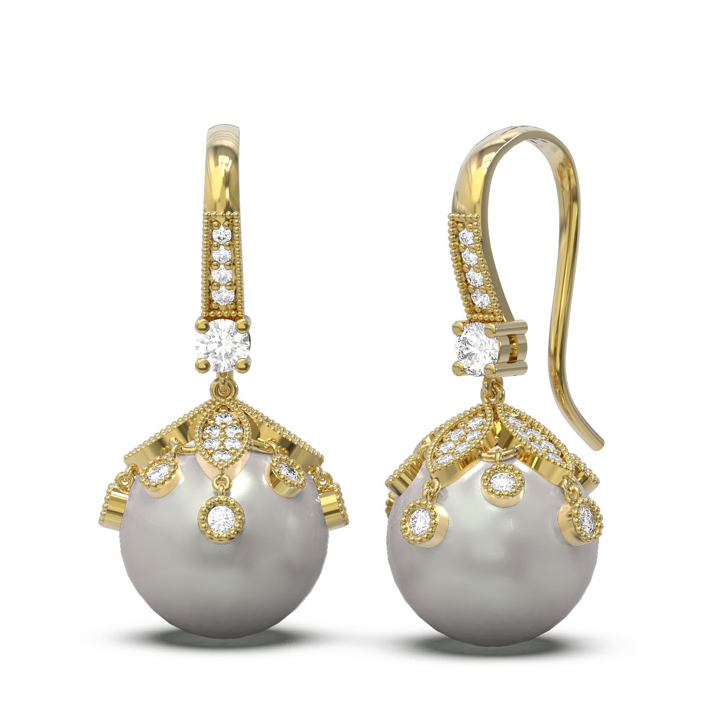 SKU: 61333 ---- 1 ctw Diamond & Pearl Earrings 18K Yellow Gold
