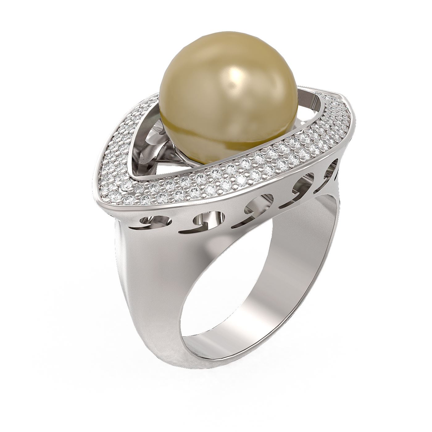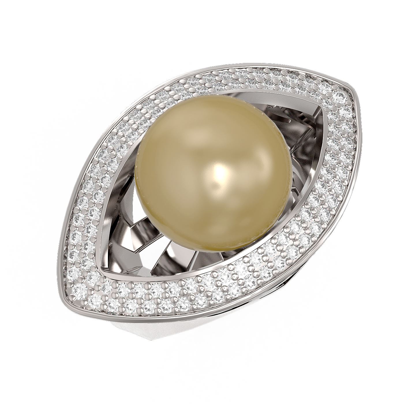 SKU: 55772 ---- 1 ctw Diamond & Pearl Ring 18K White Gold