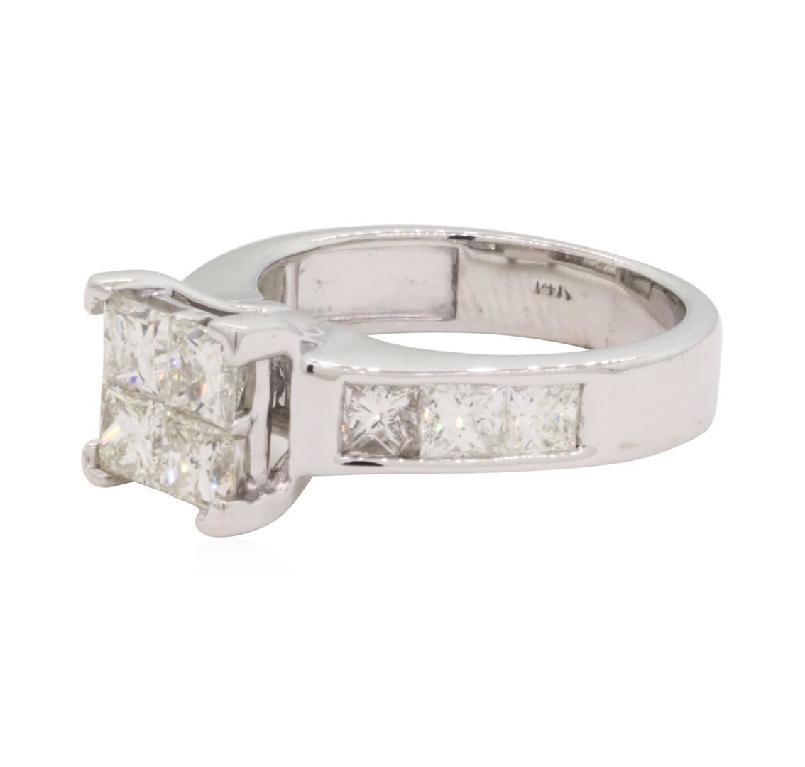 One electronically tested 14KT white gold lady's combination cast & assembled wedding ring with a cathedral shank with a bright polish finish. This featured lady's ring has a shank measuring 4.00 millimeters in width. Identified with markings of '14K'. Condition is new, good workmanship. Containing: Four invisible set princess cut diamonds, measuring 3.40 x 3.35 x 2.51mm (depth est.) approximate total weight of 4 Stones = 1.00ct. Graded in the setting. Color I - J Clarity SI-1 to SI-2 Cut Very Good Six channel set princess cut diamonds, measuring 3.00 x 2.95 x 2.21mm (depth est.) approximate total weight of 6 Stones = 1.00ct. Graded in the setting. Color I - J Clarity SI-1 to SI-2 Cut Very Good. Total Weight of Diamonds 2.00ct.. Total Weight of Ring 5.60gm GAS Appraised at $5265.00. GAS Appraised.