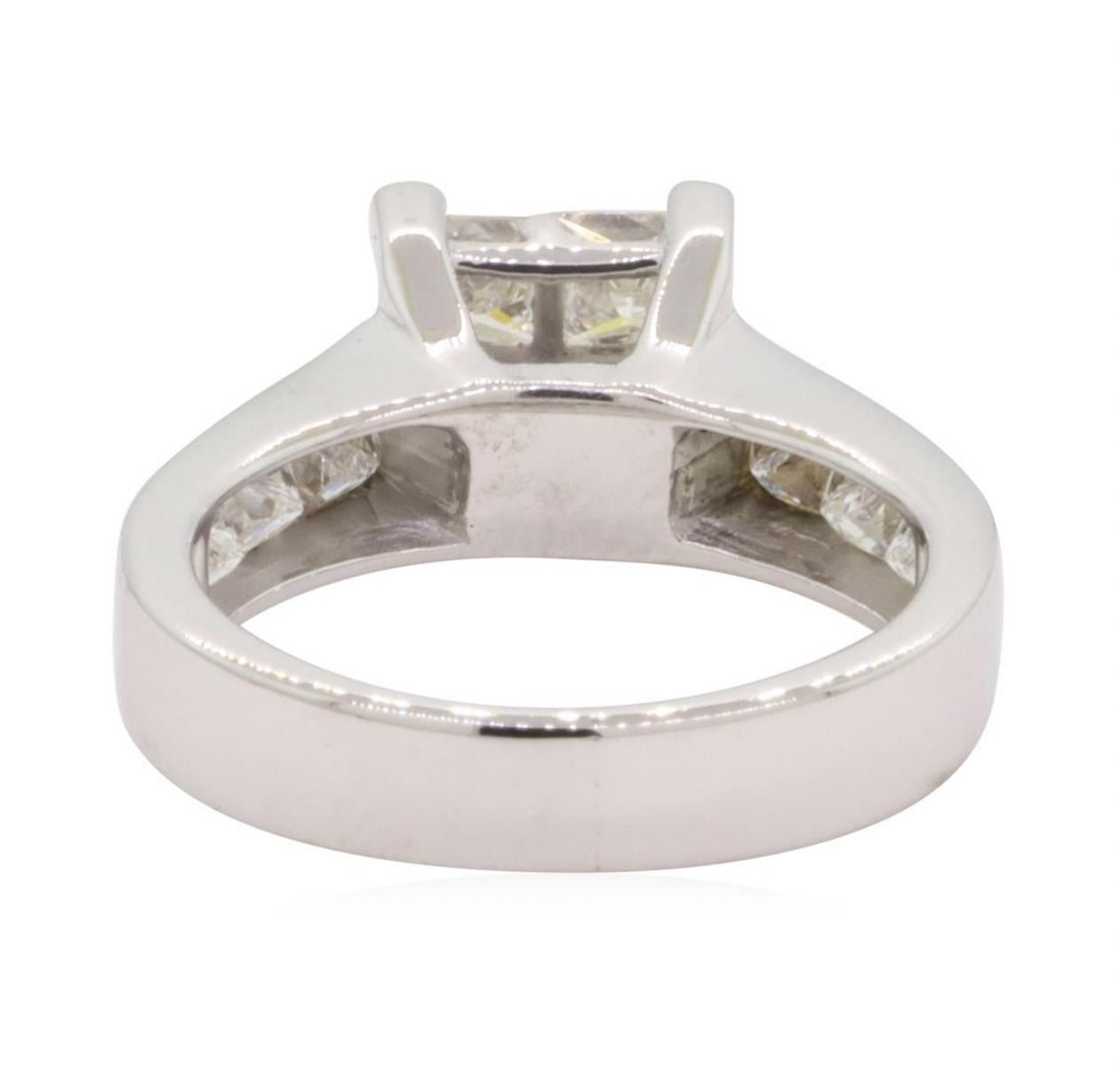 One electronically tested 14KT white gold lady's combination cast & assembled wedding ring with a cathedral shank with a bright polish finish. This featured lady's ring has a shank measuring 4.00 millimeters in width. Identified with markings of '14K'. Condition is new, good workmanship. Containing: Four invisible set princess cut diamonds, measuring 3.40 x 3.35 x 2.51mm (depth est.) approximate total weight of 4 Stones = 1.00ct. Graded in the setting. Color I - J Clarity SI-1 to SI-2 Cut Very Good Six channel set princess cut diamonds, measuring 3.00 x 2.95 x 2.21mm (depth est.) approximate total weight of 6 Stones = 1.00ct. Graded in the setting. Color I - J Clarity SI-1 to SI-2 Cut Very Good. Total Weight of Diamonds 2.00ct.. Total Weight of Ring 5.60gm GAS Appraised at $5265.00. GAS Appraised.
