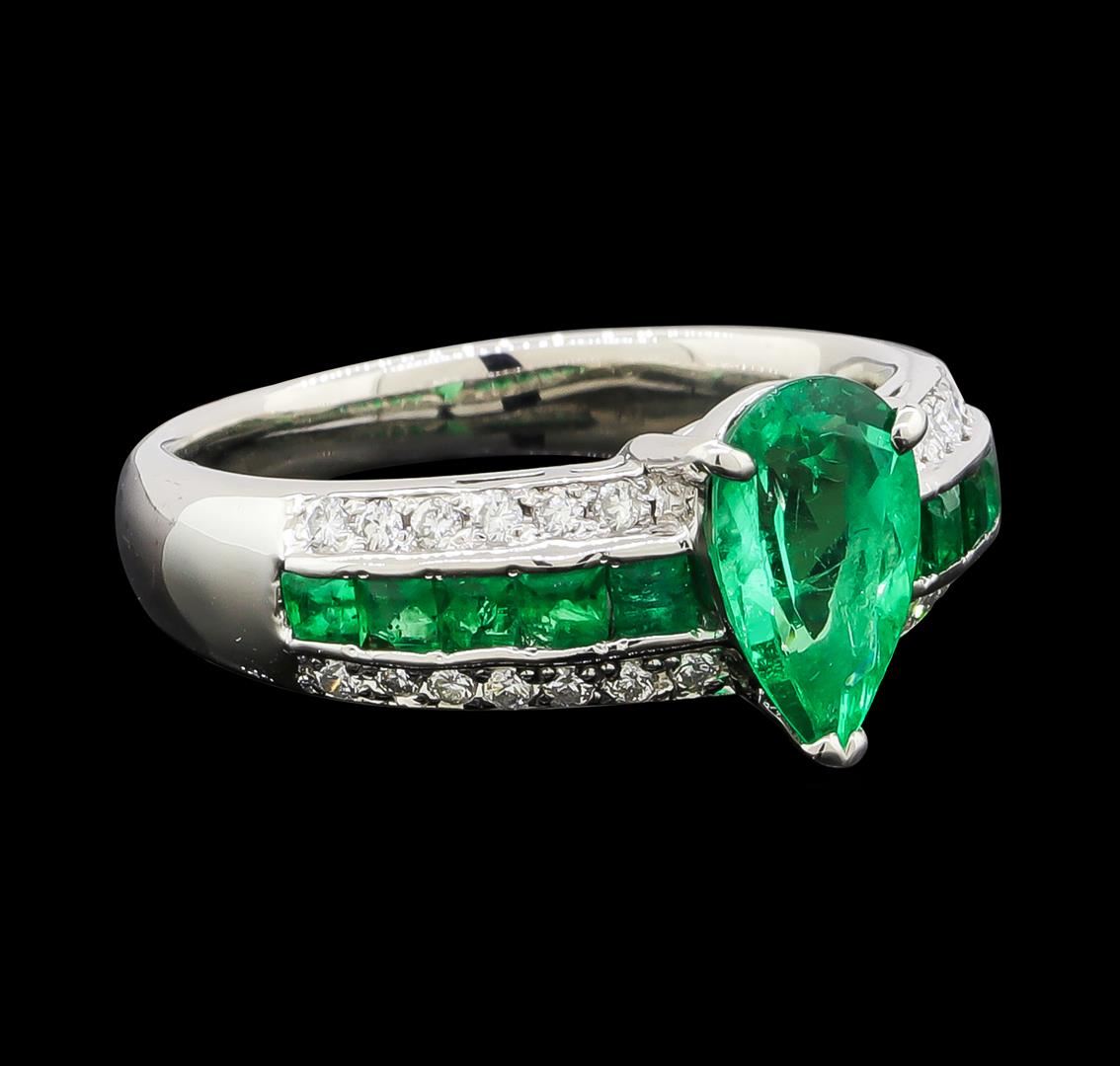 One ring featuring: Platinum containing Emerald with a total weight of 1ct, Emerald with a total weight of 0.43ct, and Diamonds with a total weight of 0.20ct. Total Weight of Ring: 7.3 grams.