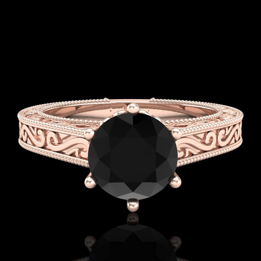 REF-105F5M - SKU: 37570 ---- 1 ctw Fancy Black Diamond Engagment Art Deco Ring 18k Rose Gold
