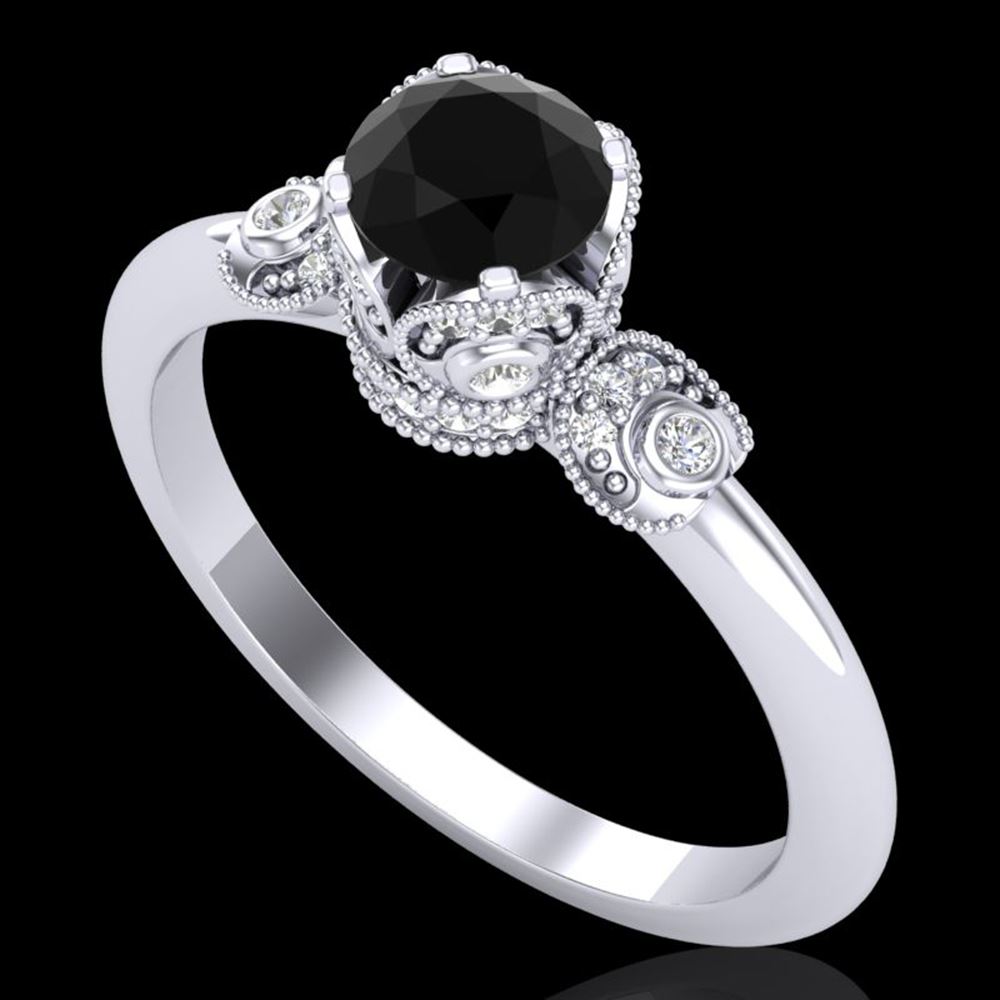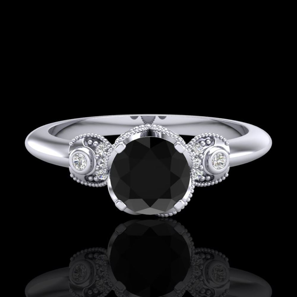 REF-80W2H - SKU: 37394 ---- 1 ctw Fancy Black Diamond Engagment Art Deco Ring 18k White Gold