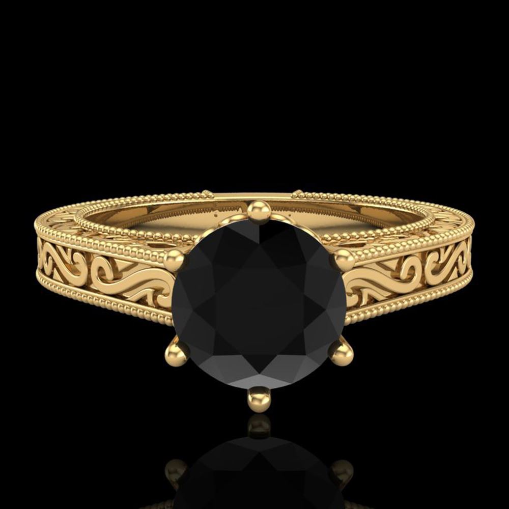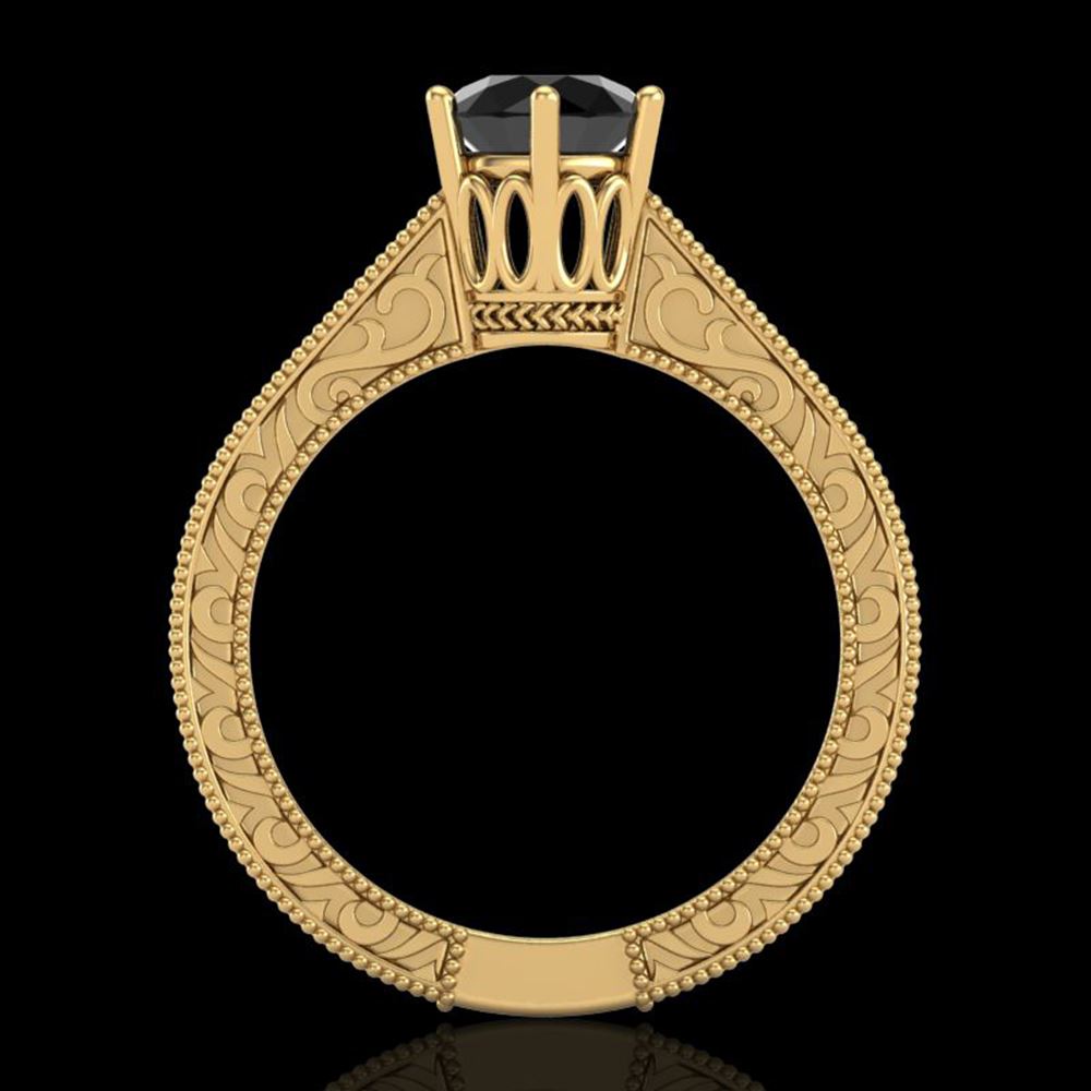 REF-105G5W - SKU: 37571 ---- 1 ctw Fancy Black Diamond Engagment Art Deco Ring 18k Yellow Gold