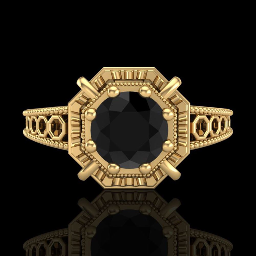 SKU: 37445 ---- 1 ctw Fancy Black Diamond Engagment Art Deco Ring 18k Yellow Gold