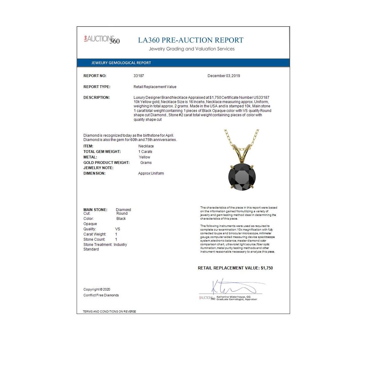 REF-21G5W - SKU: 33187 ---- 1 ctw Fancy Black Diamond Solitaire Necklace 10k Yellow Gold