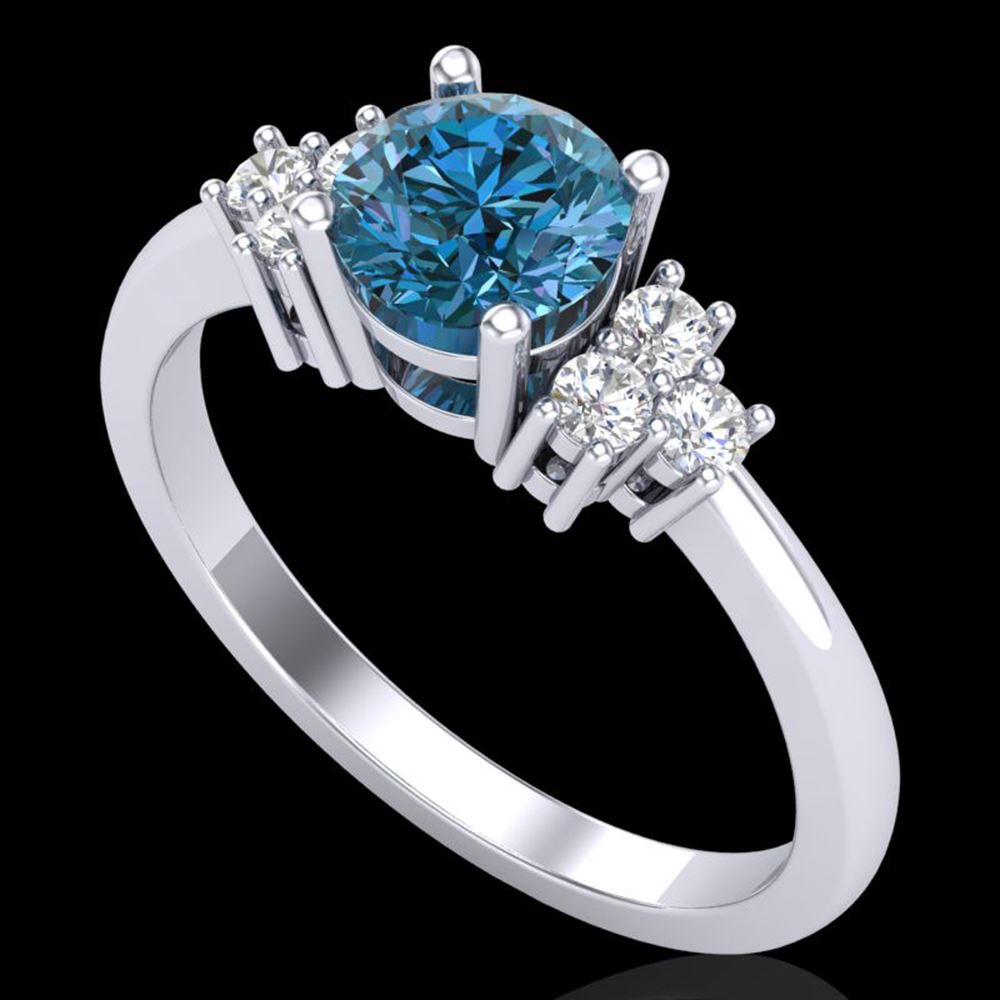 REF-145X5A - SKU: 37593 ---- 1 ctw Fancy Intense Blue Diamond Engagment Ring 18k White Gold