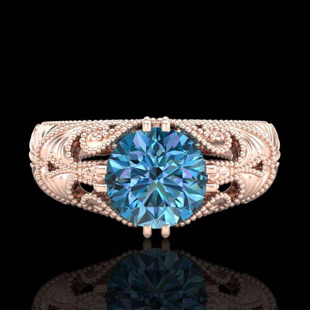REF-180F2M - SKU: 37531 ---- 1 ctw Intense Blue Diamond Engagment Art Deco Ring 18k Rose Gold
