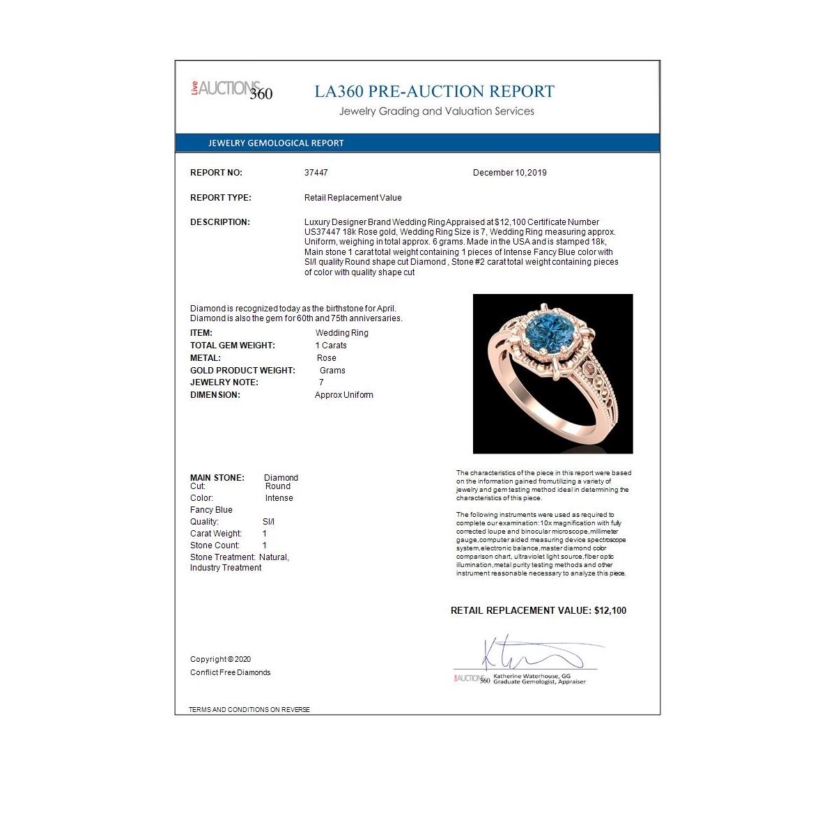 REF-200F2M - SKU: 37447 ---- 1 ctw Intense Blue Diamond Engagment Art Deco Ring 18k Rose Gold